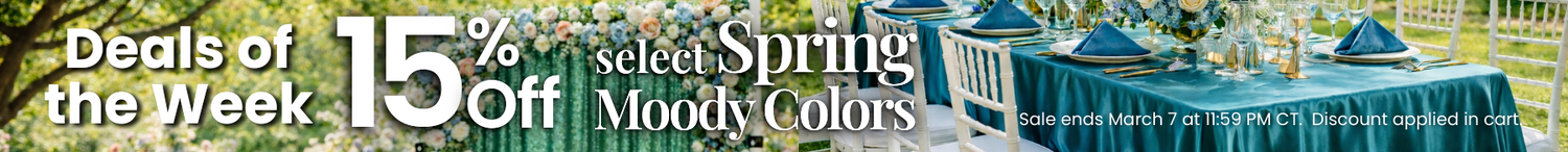 Our Deals of the Week are refreshed every week with a new selection of discounted linens and event supplies. This means you’ll always find fresh items, seasonal picks, and trending designs every time you check back.