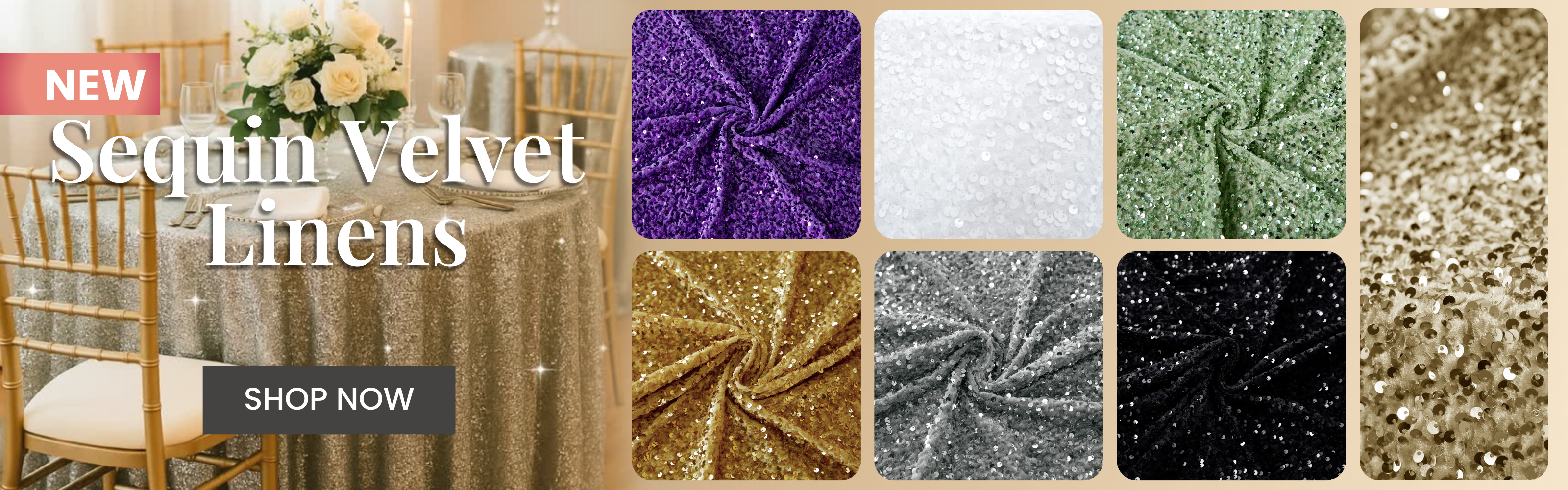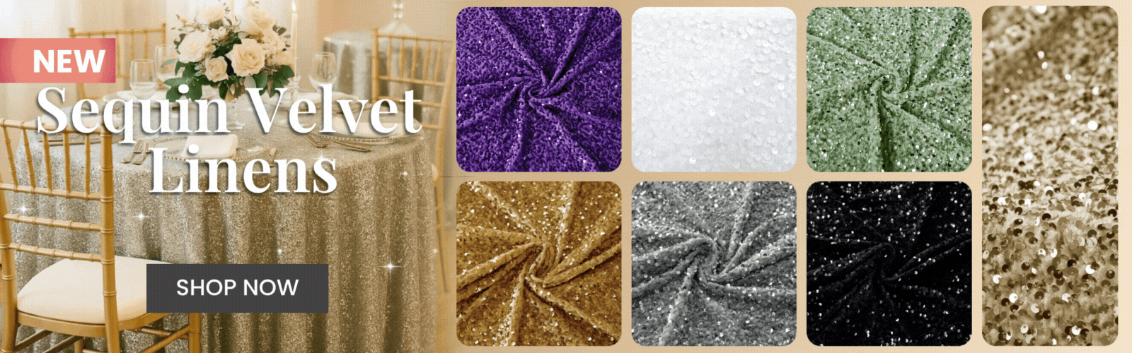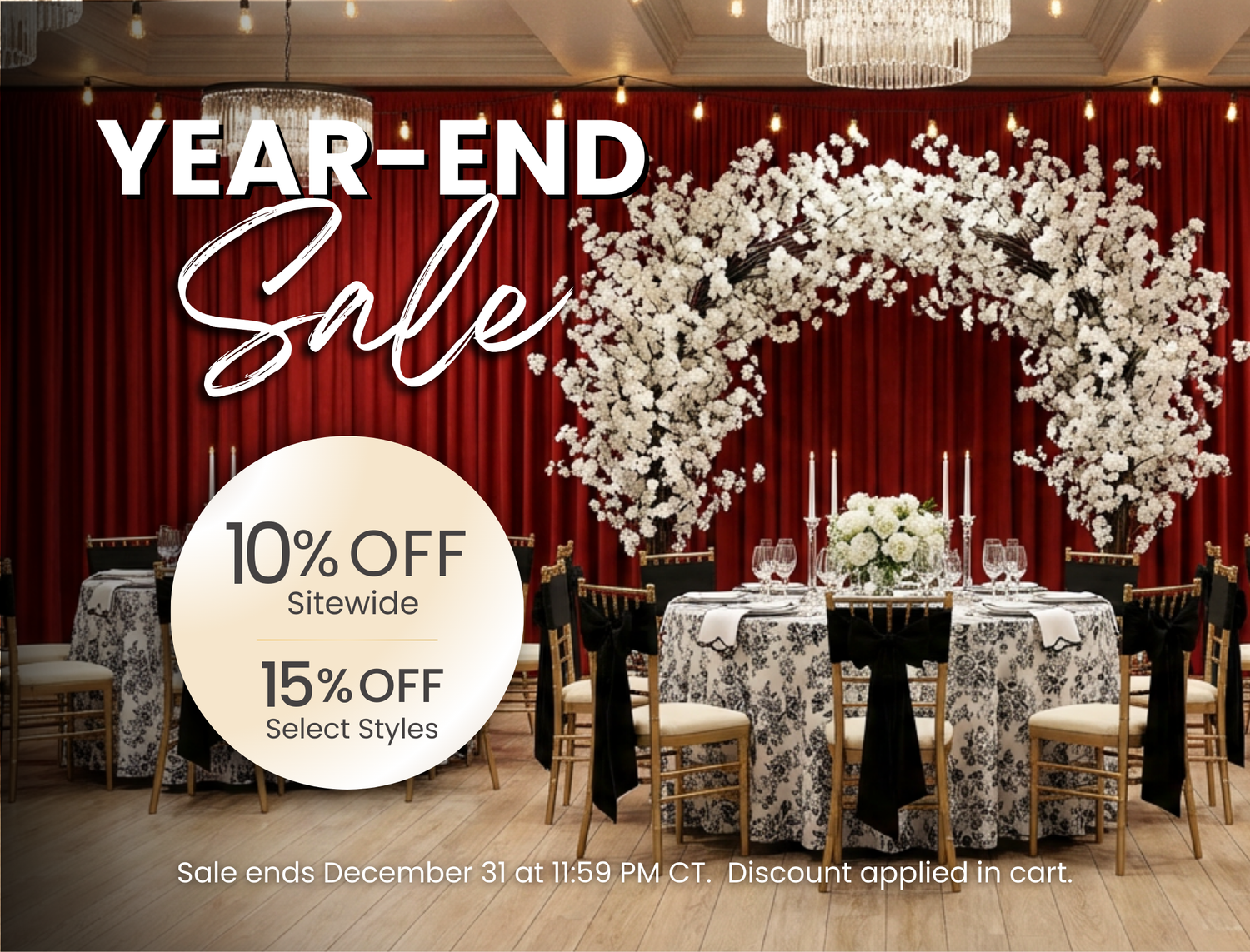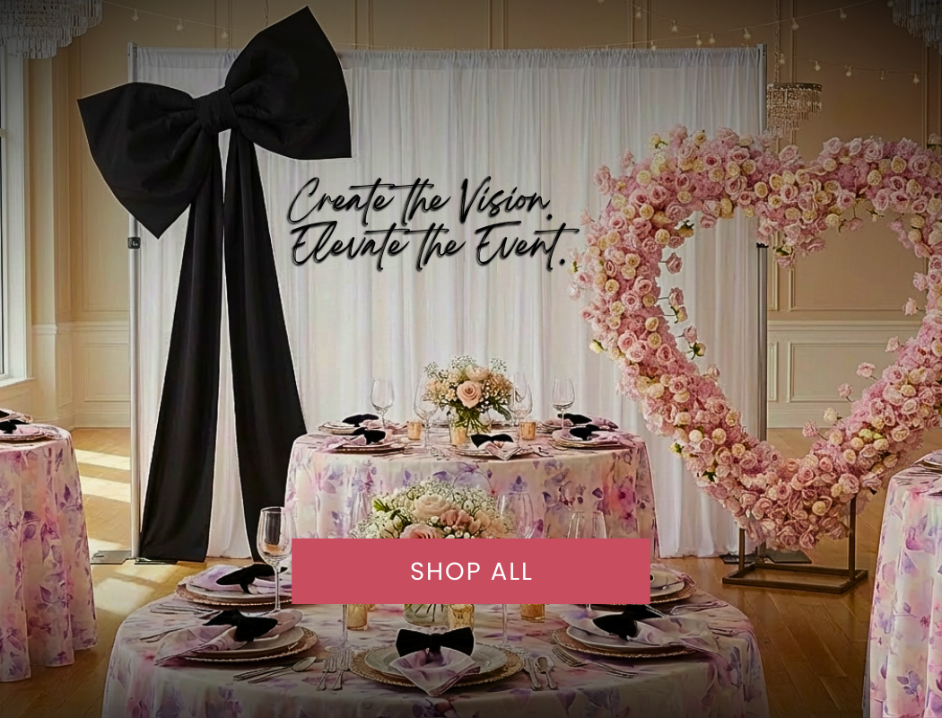 Since 2007, CV Linens remains one of the top wholesale event supply and specialty linen providers in the US. We carry an elegant line of event linens, from wholesale linen tablecloths and table runners to chair covers and chair sashes, as well as pipe and drape kits and event draping curtains. More than being a trustworthy linen tablecloths company in the US, we also provide a variety of party essentials, from floral decorations to table centerpieces and balloon supplies. CV Linens is your one-stop shop for all your event needs.