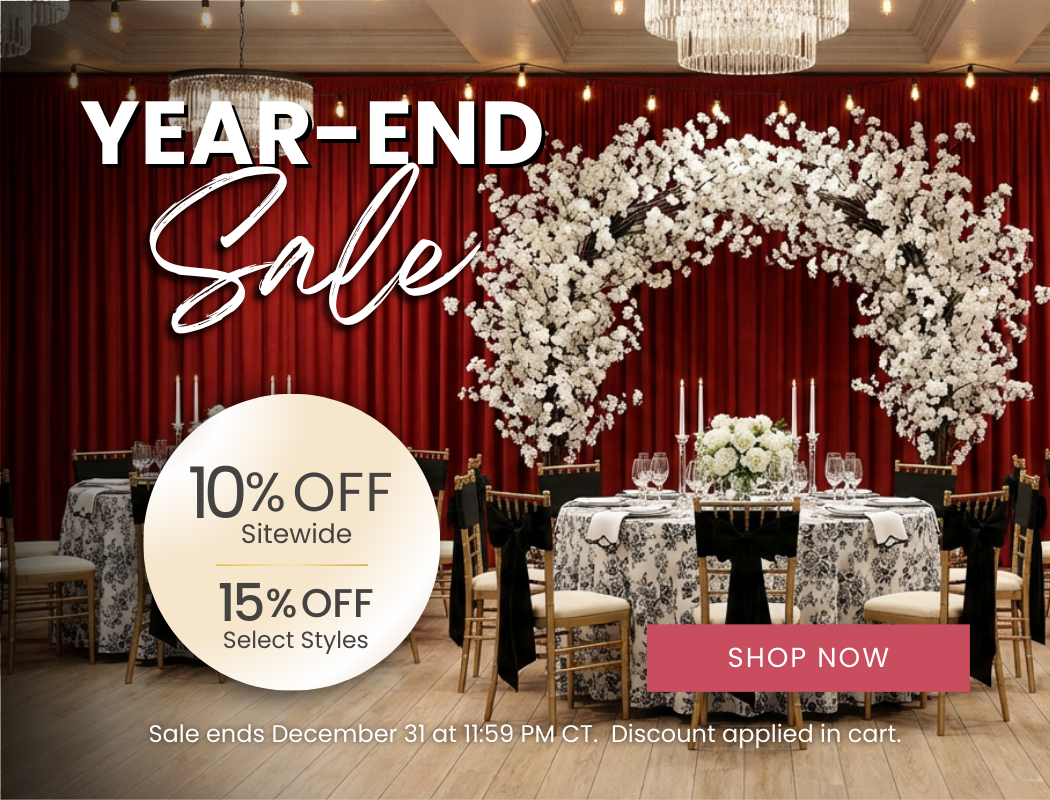 Since 2007, CV Linens remains one of the top wholesale event supply and specialty linen providers in the US. We carry an elegant line of event linens, from wholesale linen tablecloths and table runners to chair covers and chair sashes, as well as pipe and drape kits and event draping curtains. More than being a trustworthy linen tablecloths company in the US, we also provide a variety of party essentials, from floral decorations to table centerpieces and balloon supplies. CV Linens is your one-stop shop for all your event needs.