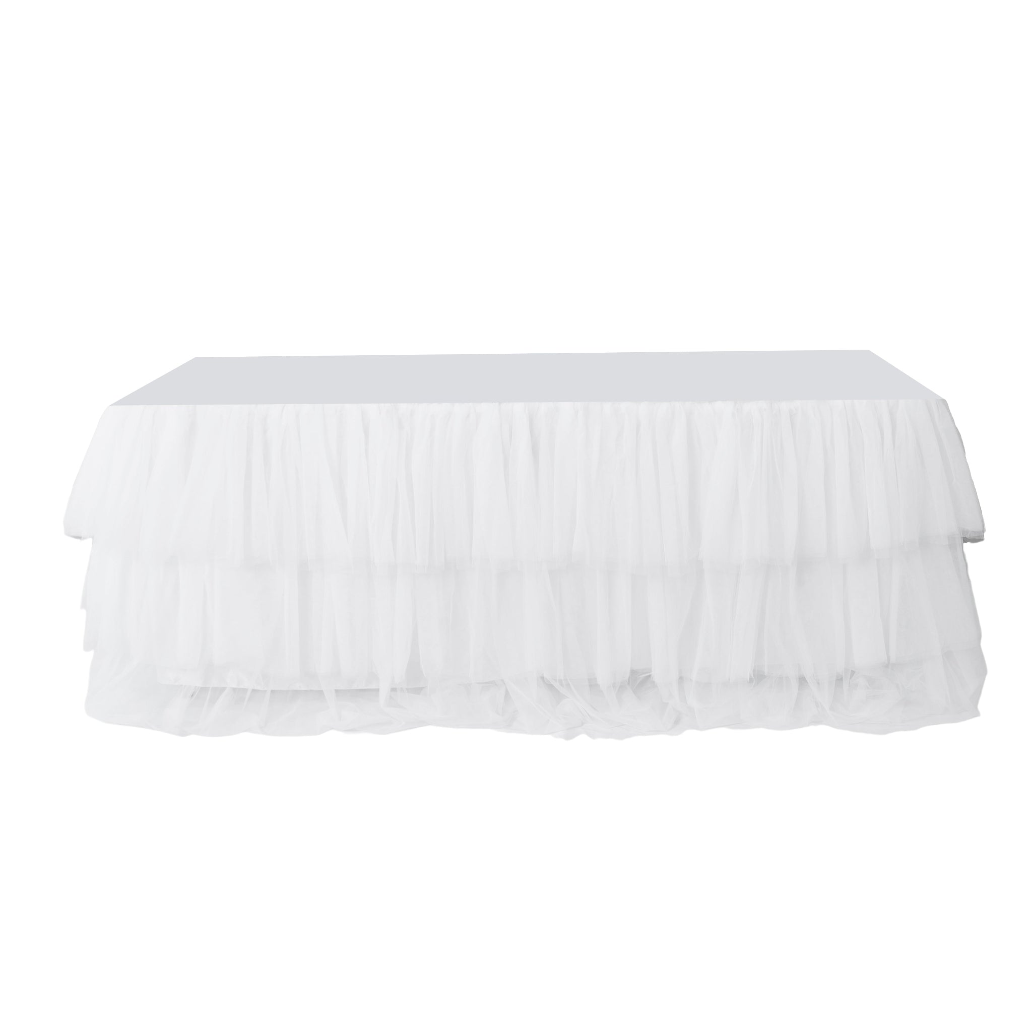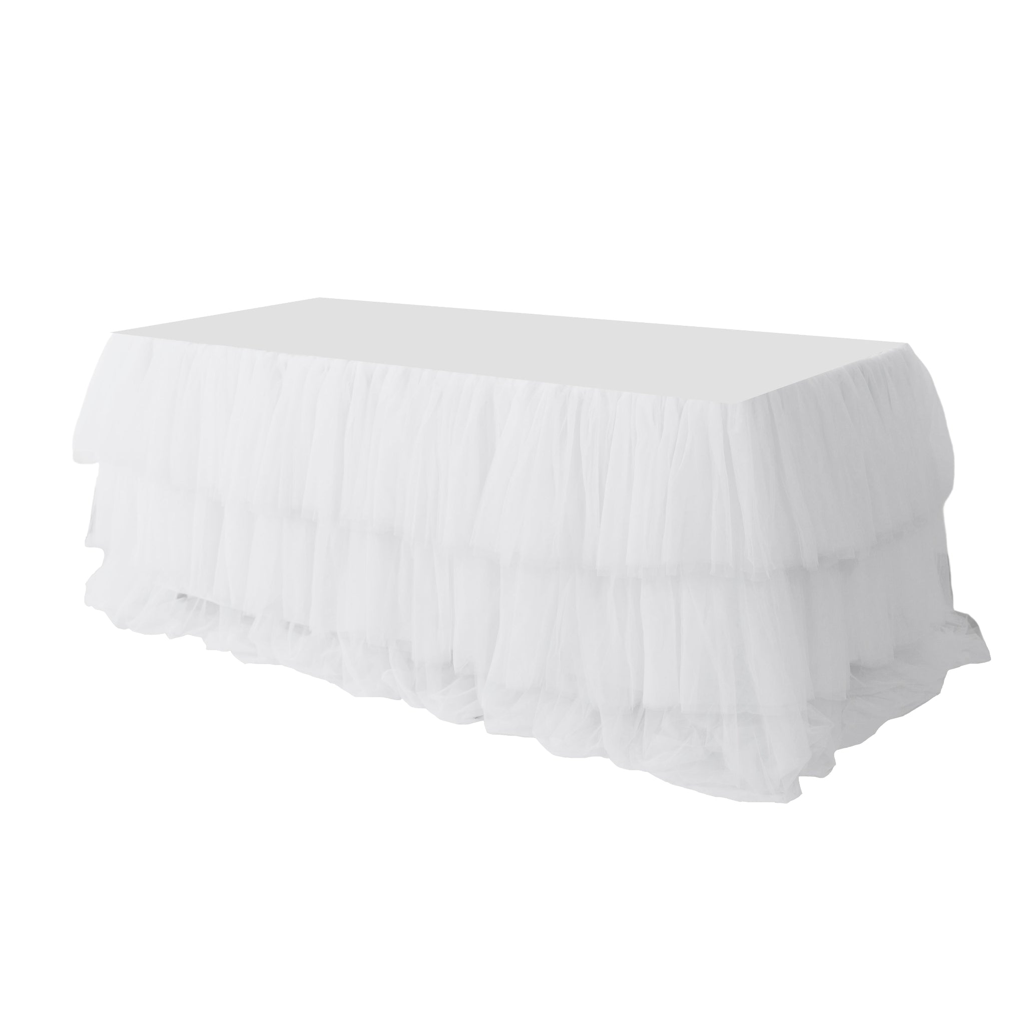 14ft Ruffle Layered White Tulle Tableskirt | CV Linens™