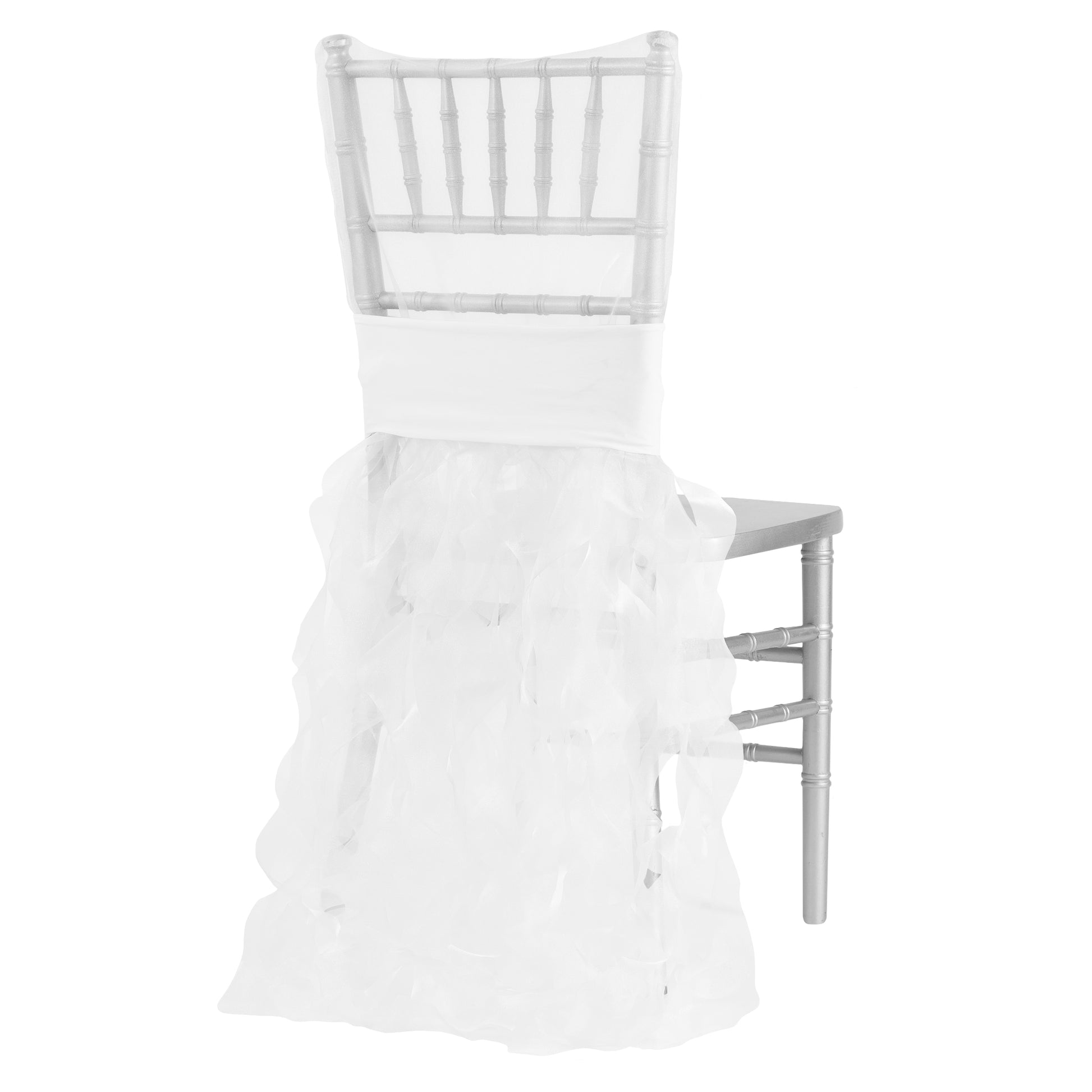 Another fantastic addition to our Curly Willow Line! Our Curly Willow Chiavari Chair Back Slip Covers are an amazing way to add a luxurious twist to your special occasion decor. Each gorgeous chair cover is made from our high-quality organza and embellished with our signature Curly Willow at the bottom. These beautiful spirals of organza will add the perfect finishing touch to your wedding or special day! Best of all, you can easily coordinate our Curly Willow Chiavari Chair Back Slip Covers with any of our other organza or Curly Willow items.