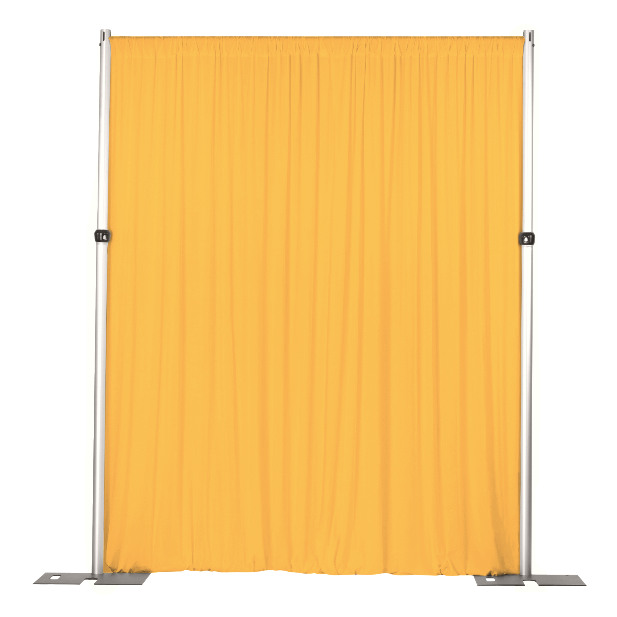 Begin by setting up a pipe and drape stand as the sturdy base for your display. Then, drape the canary yellow spandex 4-way stretch backdrop curtain to create a luxurious canvas that establishes the vibe and feel of your event.