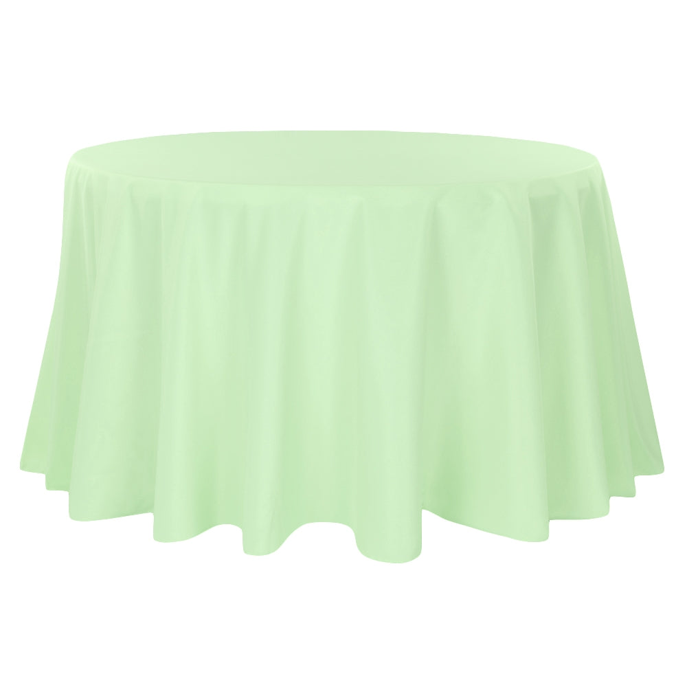 Add a serene and graceful ambiance to your event with a Polyester 108” Round Tablecloth - Mint Green. Mint Green is a staple in event decor for its versatility and visual appeal. Perfect for wedding reception table settings to create a stunning and graceful backdrop to celebrate love.