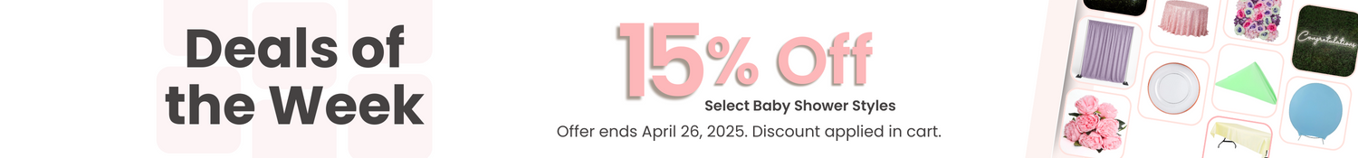 The weekly deals include a rotating variety of event essentials such as tablecloths, chair covers, sashes, napkins, backdrops, and decorative supplies. The selection changes based on customer favorites, seasonal trends, and upcoming holidays, so there’s always something new to explore.
