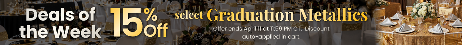 Our Deals of the Week are refreshed every week with a new selection of discounted linens and event supplies. This means you’ll always find fresh items, seasonal picks, and trending designs every time you check back.
