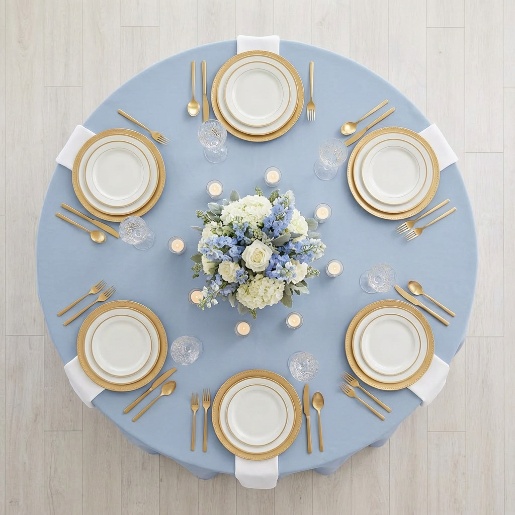 Decorating with Polyester Dusty Blue Tablecloths