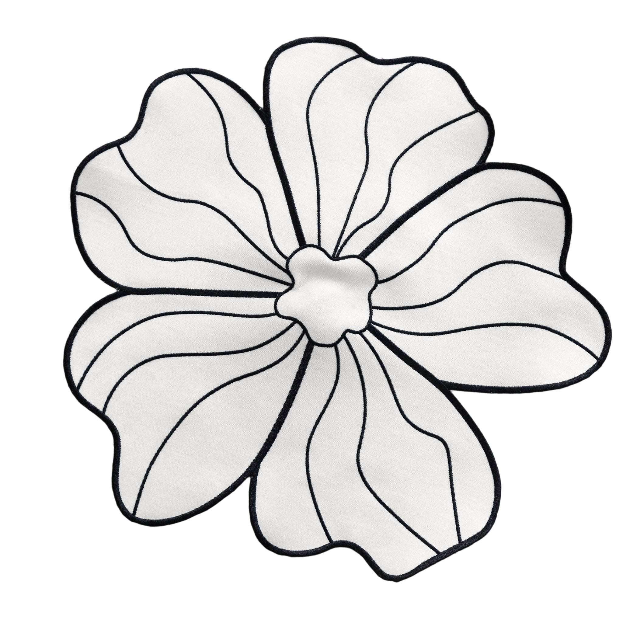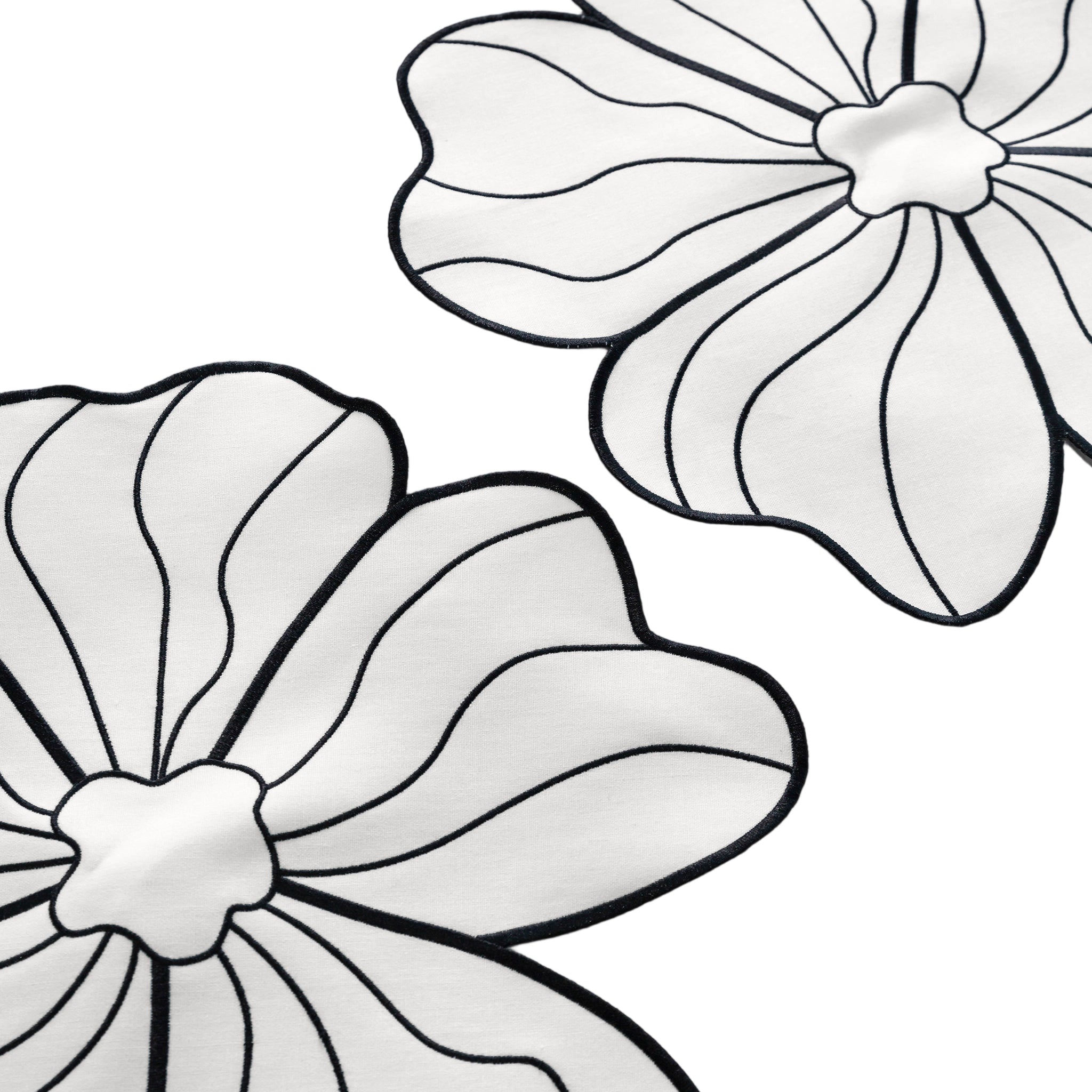 Crafted from premium linen fabric, these flower linen placemats with the charm of hand-embroidered detail with the practicality of durable material. Its intricate stitching and petal silhouette create a unique decorative accent. Use as a charger base, an accent piece under centerpieces, or a stylish layer for dessert or cocktail tables.