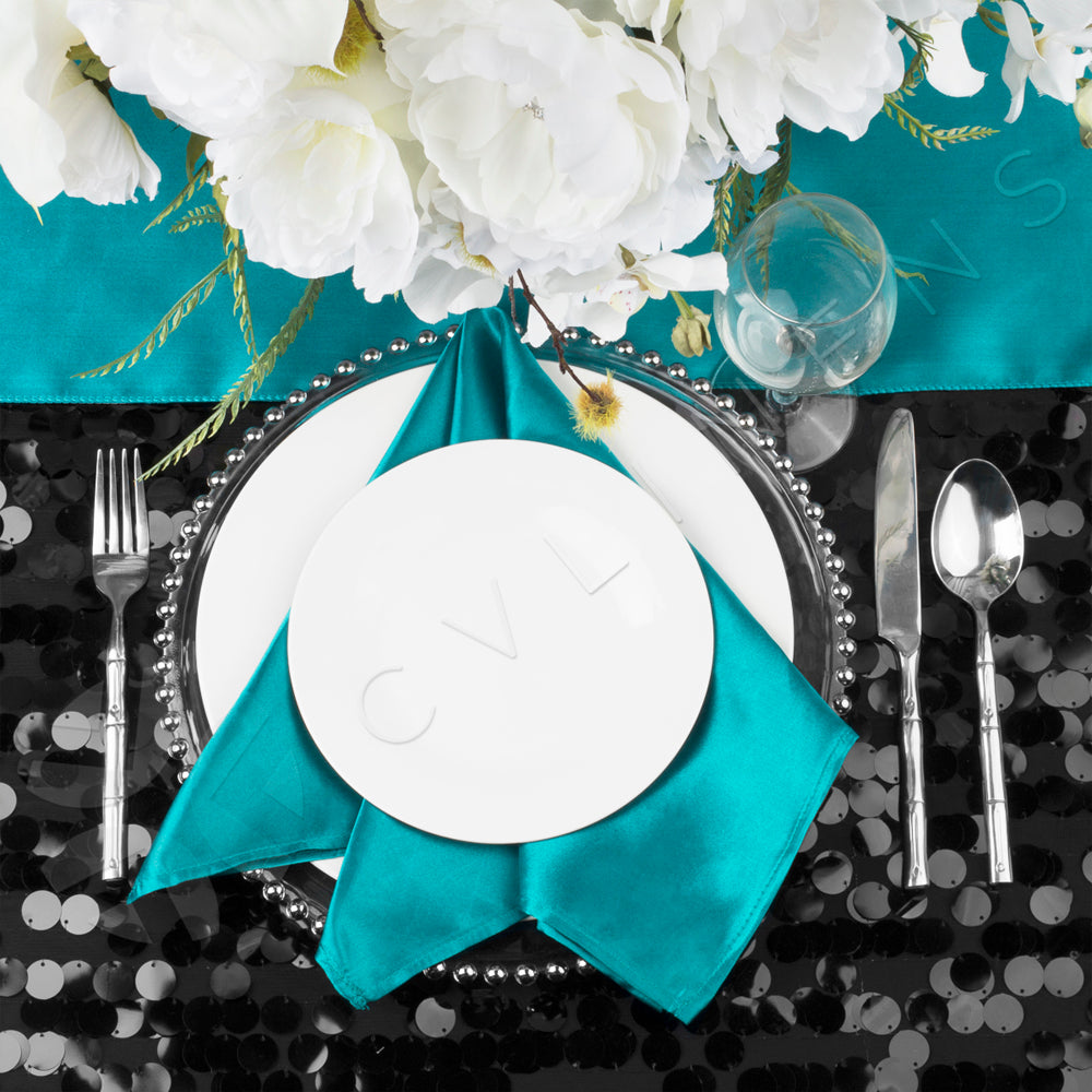 Embrace the glamour with our Payette Sequin Tablecloths! Each tablecloth features large, round, metallic Payette sequins stitched onto a mesh background. The sequins are secured from one point which give them a majestic, organic flow. Perfect for bringing a dramatic flare to your wedding, Quinceanera, New Years bash, or any other special event, our Payette Sequin Tablecloth is sure to impress!
