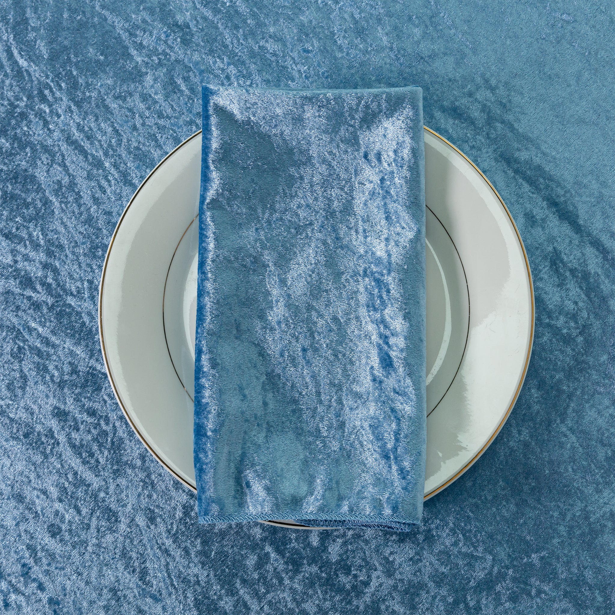Made out of velvet, these tablecloth napkins have a textured feel and soft sheen. Velvet is a popular fabric option for event decorators. It evokes a touch of elegance and sophistication in any event space. Easily get a polished look with the classic shade of steele blue.