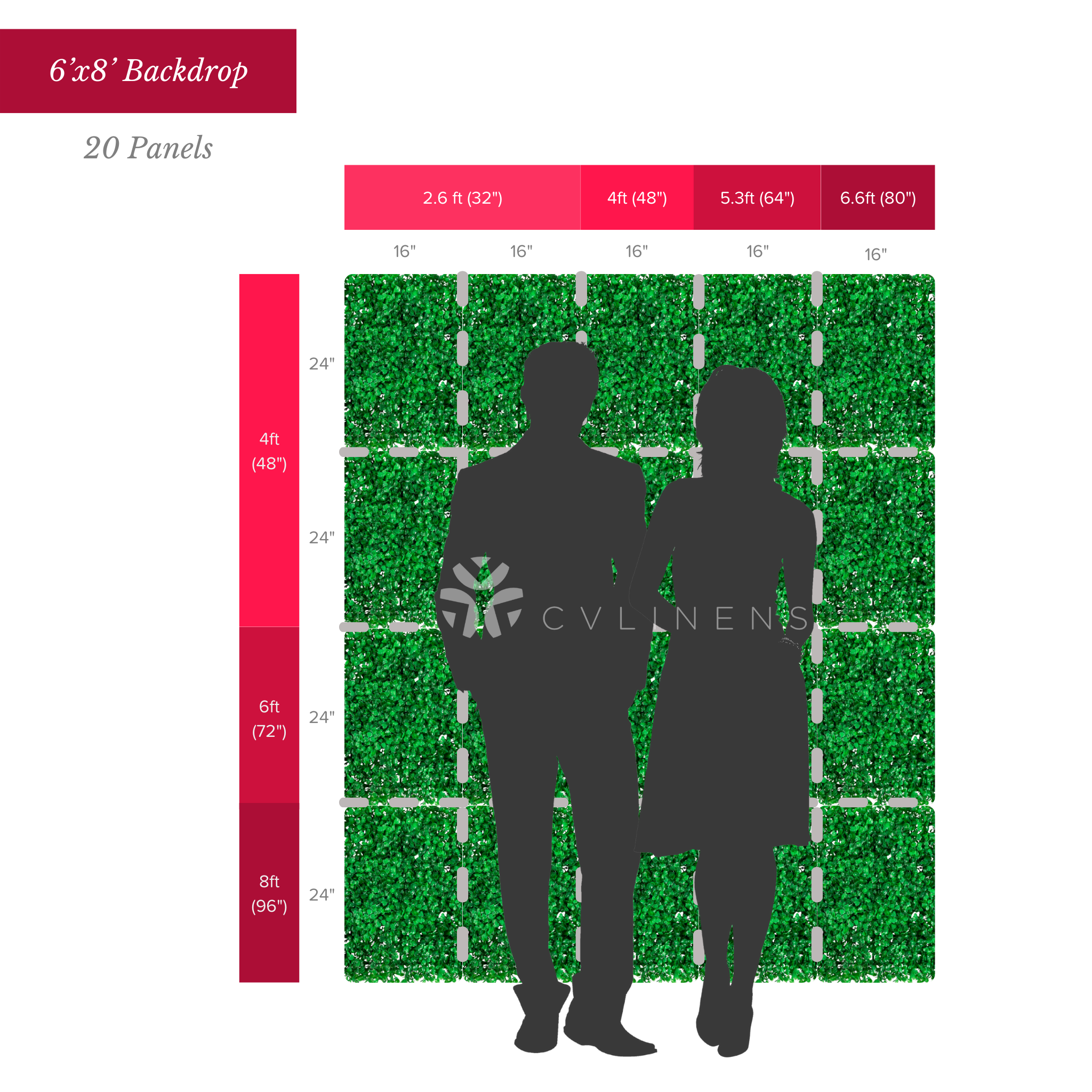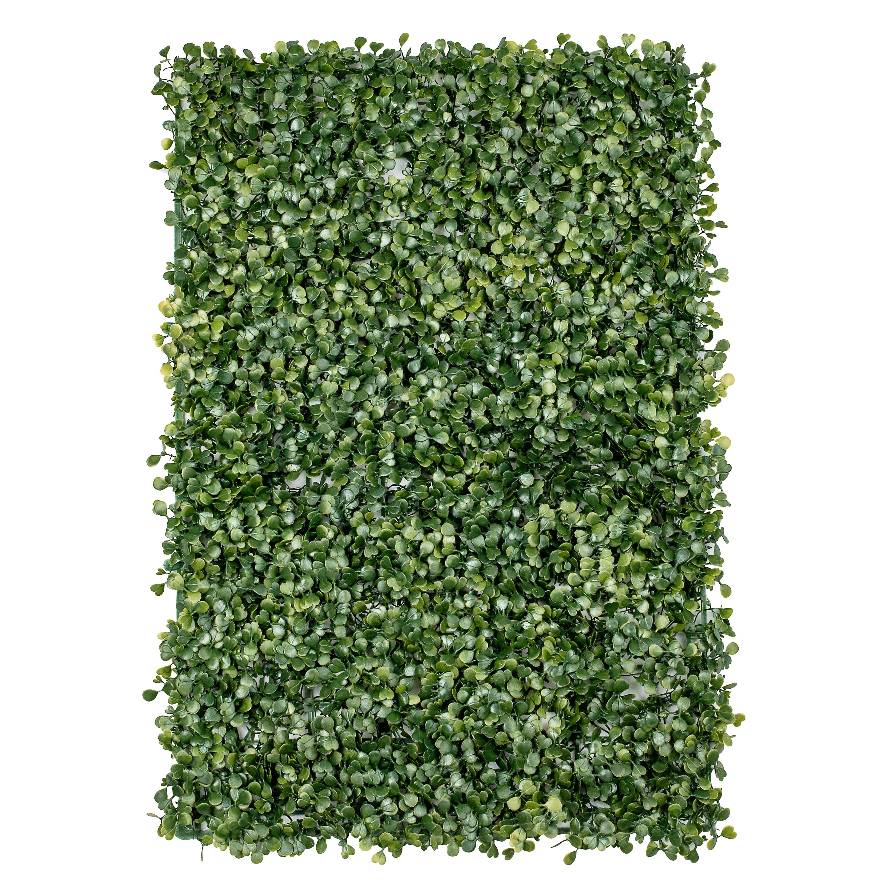Add a picture-perfect touch to your next special occasion with this faux foliage boxwood wall panel! No matter your wedding aesthetic, there's an easy way to incorporate faux greenery wall decor into your party design. Boxwood greenery makes a major visual statement, and because it is made with faux greenery, it won't wilt and so it can be enjoyed for your other events as well. Silk greenery looks gorgeous on its own or it can be combined with faux flower accents and foam letters for a customized touch. An artificial living wall sets an eco-friendly backdrop for your wedding day, birthday party, bridal shower, baby shower, anniversary, and all other occasions. This gorgeous wall of greenery makes for a striking natural backdrop for taking memorable photos and creating a magical ambiance throughout your venue. Our hanging greenery backdrop provides top quality style for a low wholesale price. The look carries with it a rich, dark green hue that beautifully imitates a natural boxwood plant.