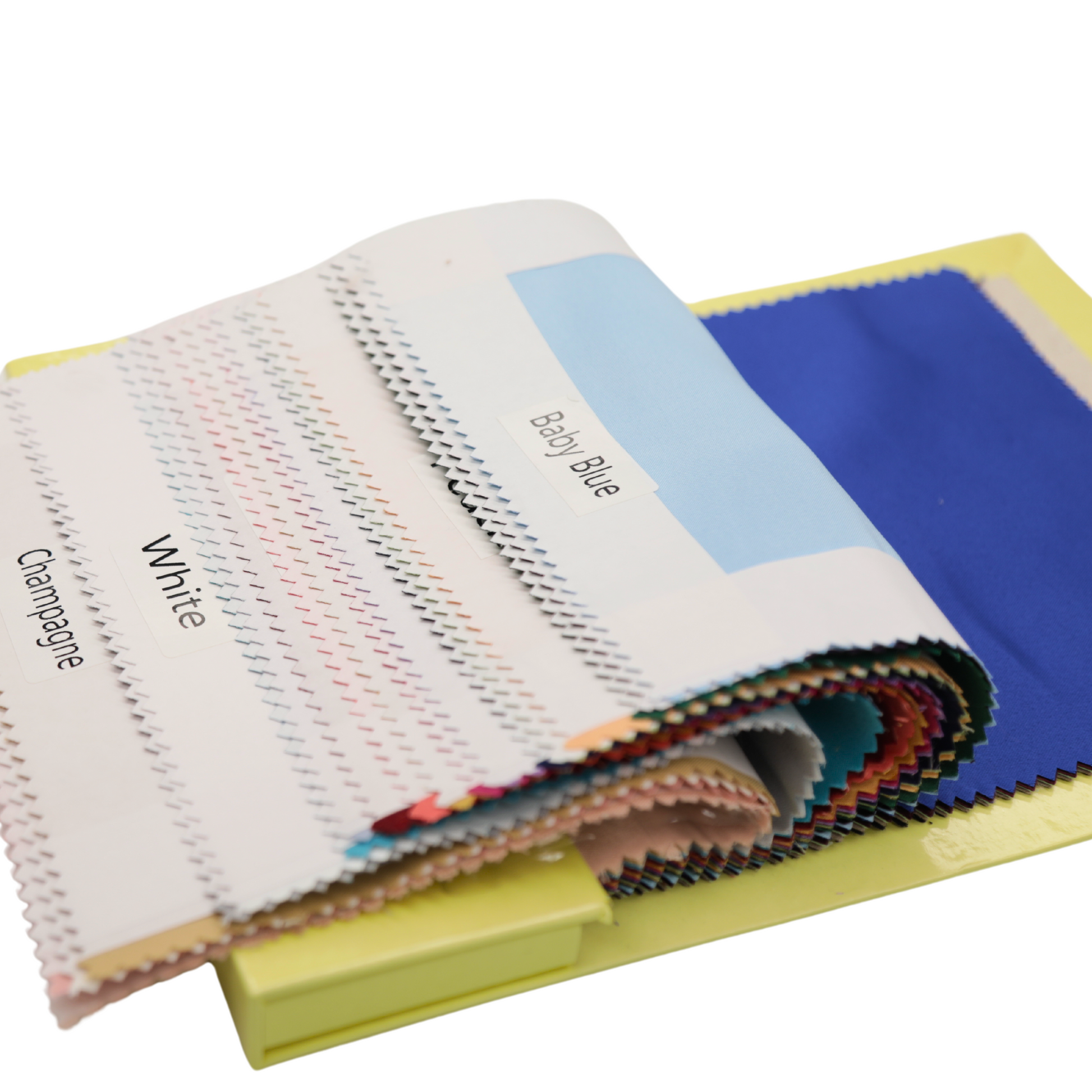 Coordinating your color palette just got easier with our Lamour Satin Swatch Book! It's the new, must-have tool for any event planner! Each Swatch is roughly 6 1/2"x 8" and bound vertically in with a clear, protective cover. Make your consultation process a breeze with our Swatch Book!