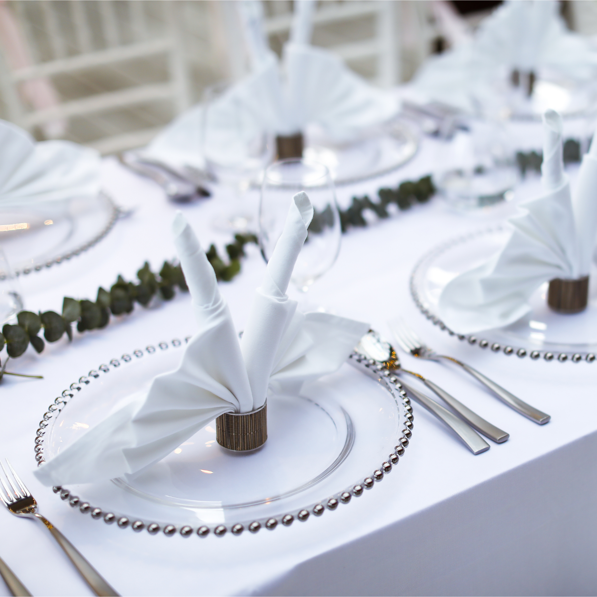 Craft elegant tablescapes with Silver Beaded Charger Plates and enjoy a luxurious dining experience. We have reef gold charger plates, gold beaded charger plates, and glass chargers for both formal parties and casual get-togethers. Complete your party with our wide range of tablecloth and table linen options.