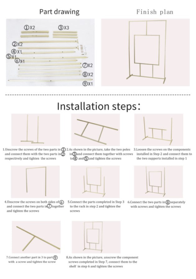 An arch backdrop frame stand is a terrific decor element that serves as a great photo backdrop or highlights for special event destinations like your dessert table or sweetheart tables. This arch backdrop stand is easy to assemble and break down for easy installation and transportation and can be put up anywhere and everywhere at your venue from the ceremony alter to the reception hall. It can be used indoors or out, which will really perk up your garden fiestas, especially when paired with colorful florals, pampas grass, or romantic LED lighting. This wedding arch can be decorated with flowers, tulle, balloons garlands, drapery fabric, greenery, fairy lights, and more. Clean, modern lines enhance all of your embellishments and also acts as a stylish standalone for minimalist decorating. Tools are included for assembly to make quick and easy work of creating one-of-a-kind event backdrop displays.