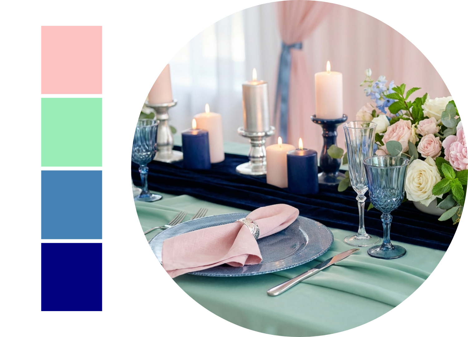 Pastel Pink, Mint Green, Steele Blue and Navy Blue