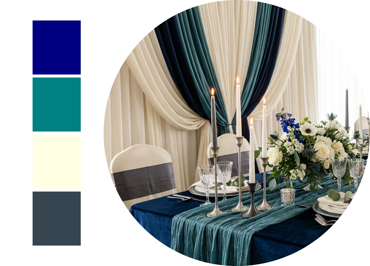 Navy Blue, Teal, Ivory and Charcoal