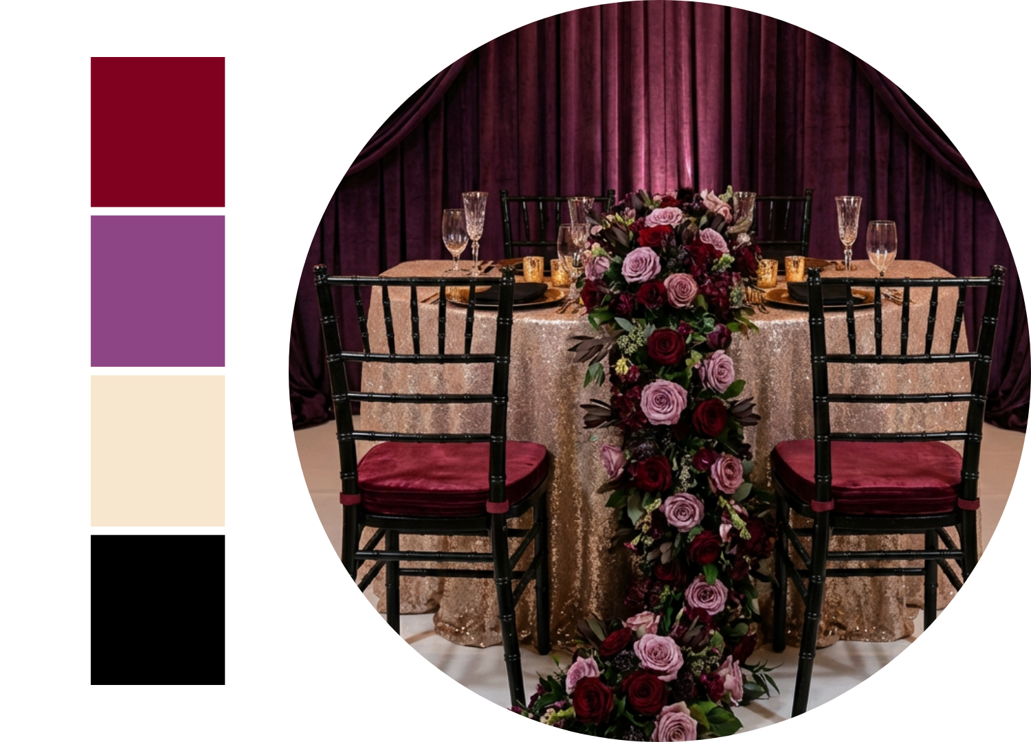 Burgundy, Plum, Champagne and Black