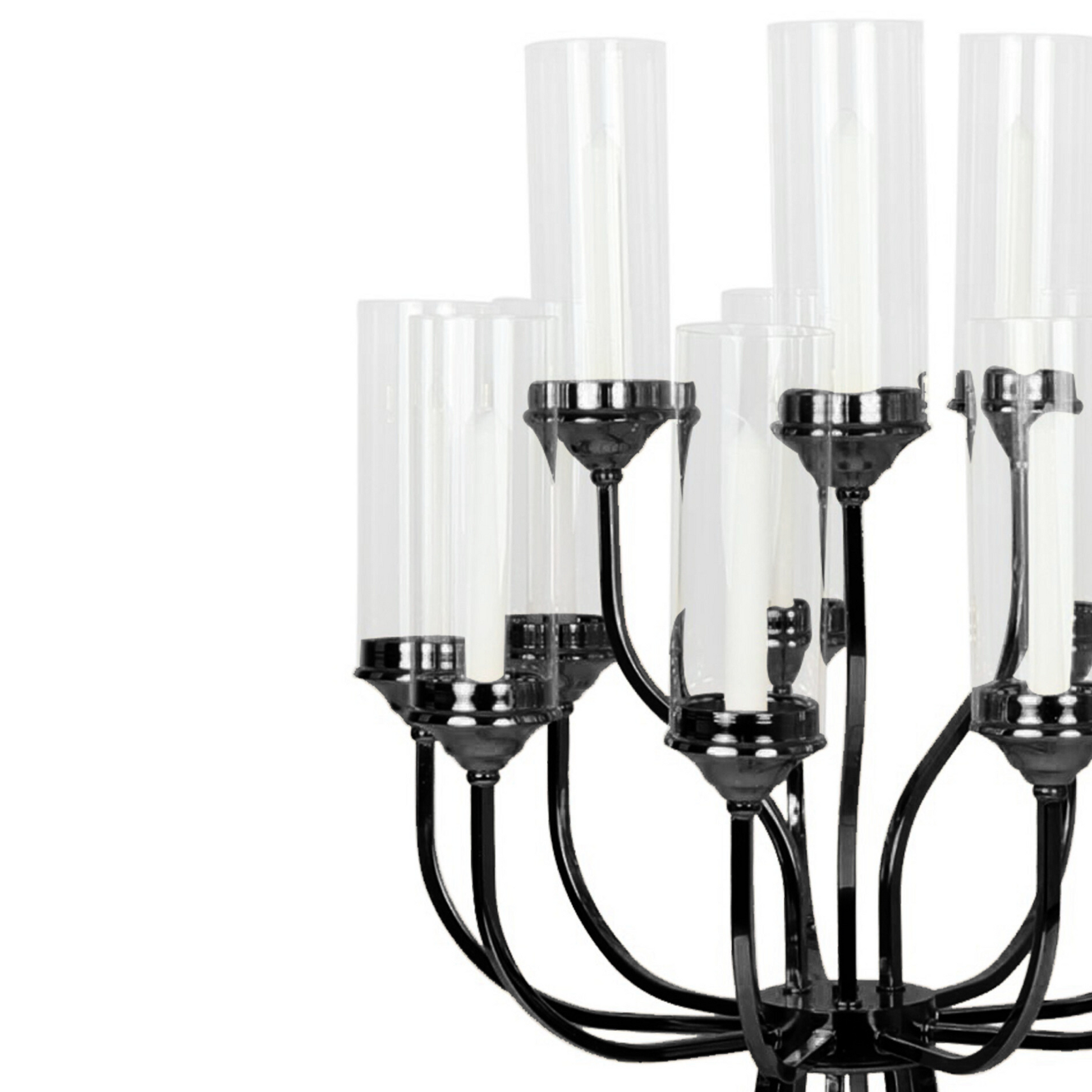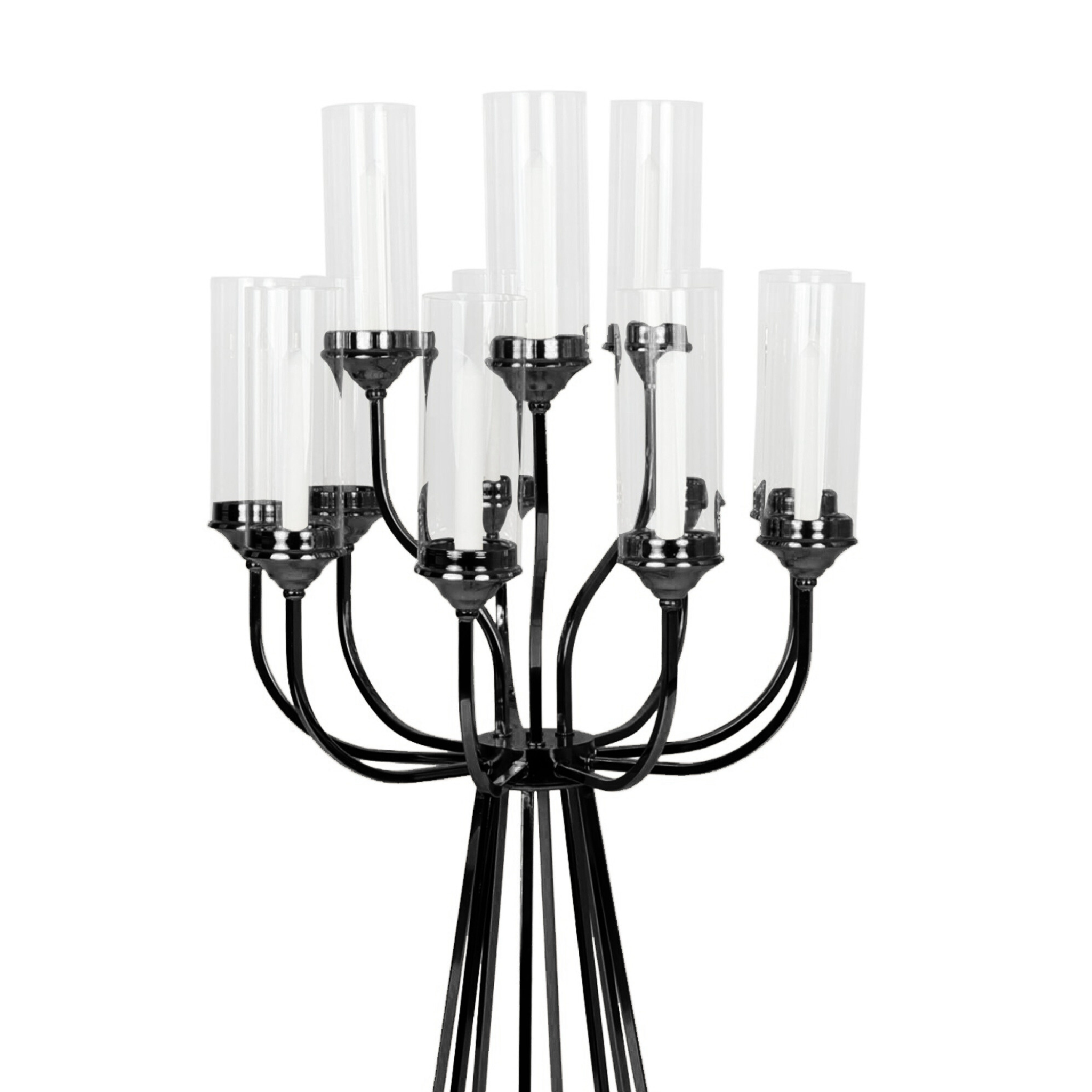 Add a touch of elegance to your wedding table or reception decor with this 12 Arms Candle Holder Wedding Candelabra Table Centerpiece 48"H - Black. This elegant black plated candle holder for tapper candles will be the focal point of the event venue. This 48" tall candelabra centerpiece can be used as a focal point for your party tables, buffets, dessert tables, entrance stairs, or stage floor decor.