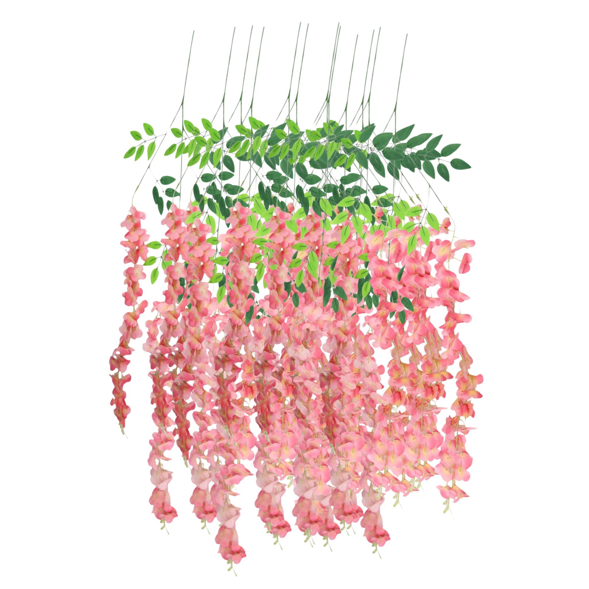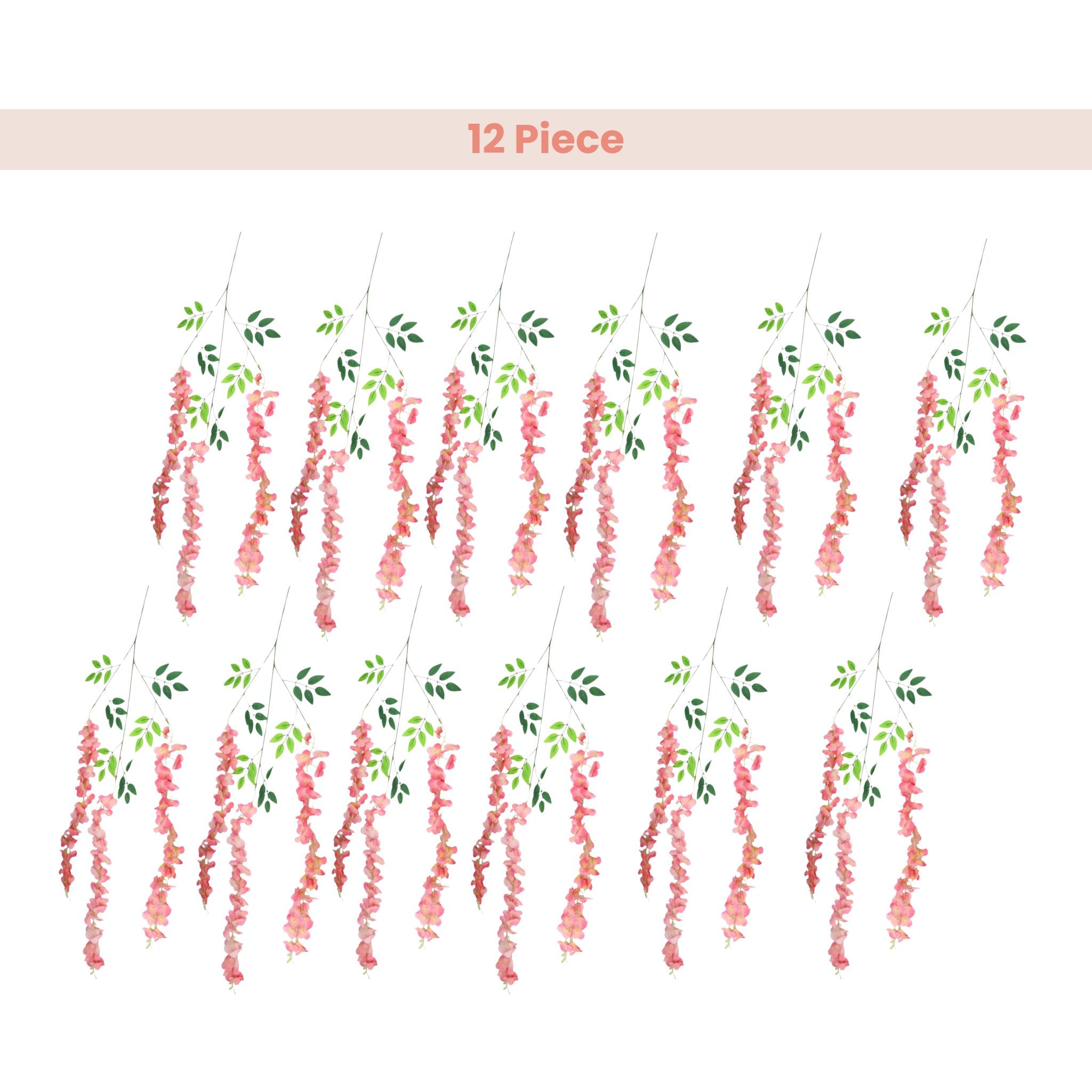 Our fuchsia hanging wisteria vines are crafted from high-quality artificial materials that mimic the delicate look and soft movement of real blooms. Each pack includes twelve stems, giving you ample volume for lush installations or layered floral designs.