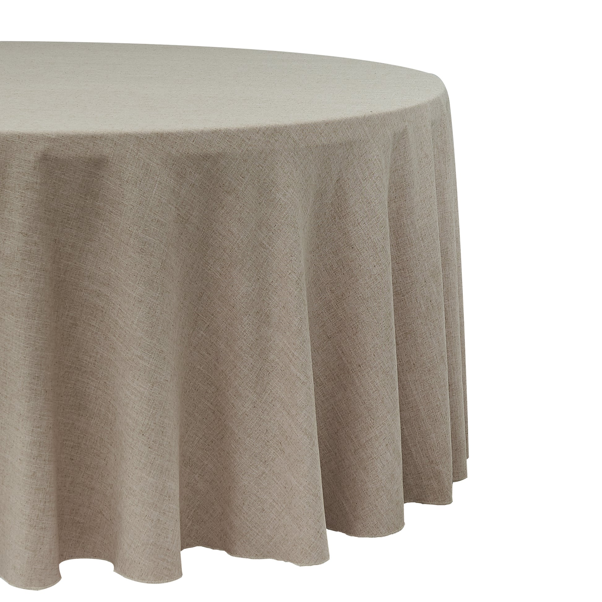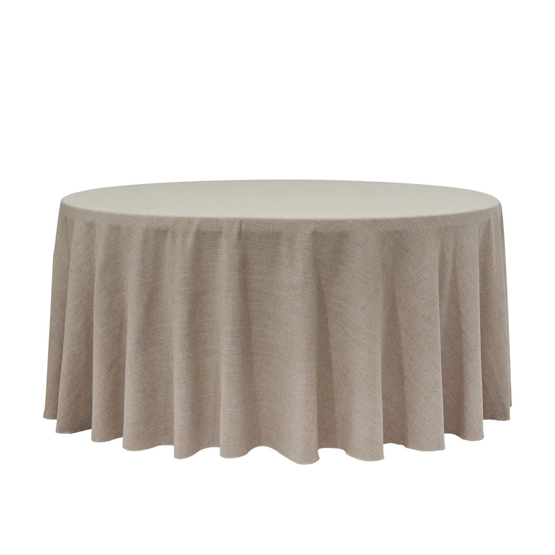 Add refined charm to your part with our 120" Round Premium Linen-Look Panama Weave Tablecloth in Beige. This stunning round tablecloth combines the timeless beauty of linen with the easy care and durability of polyester.