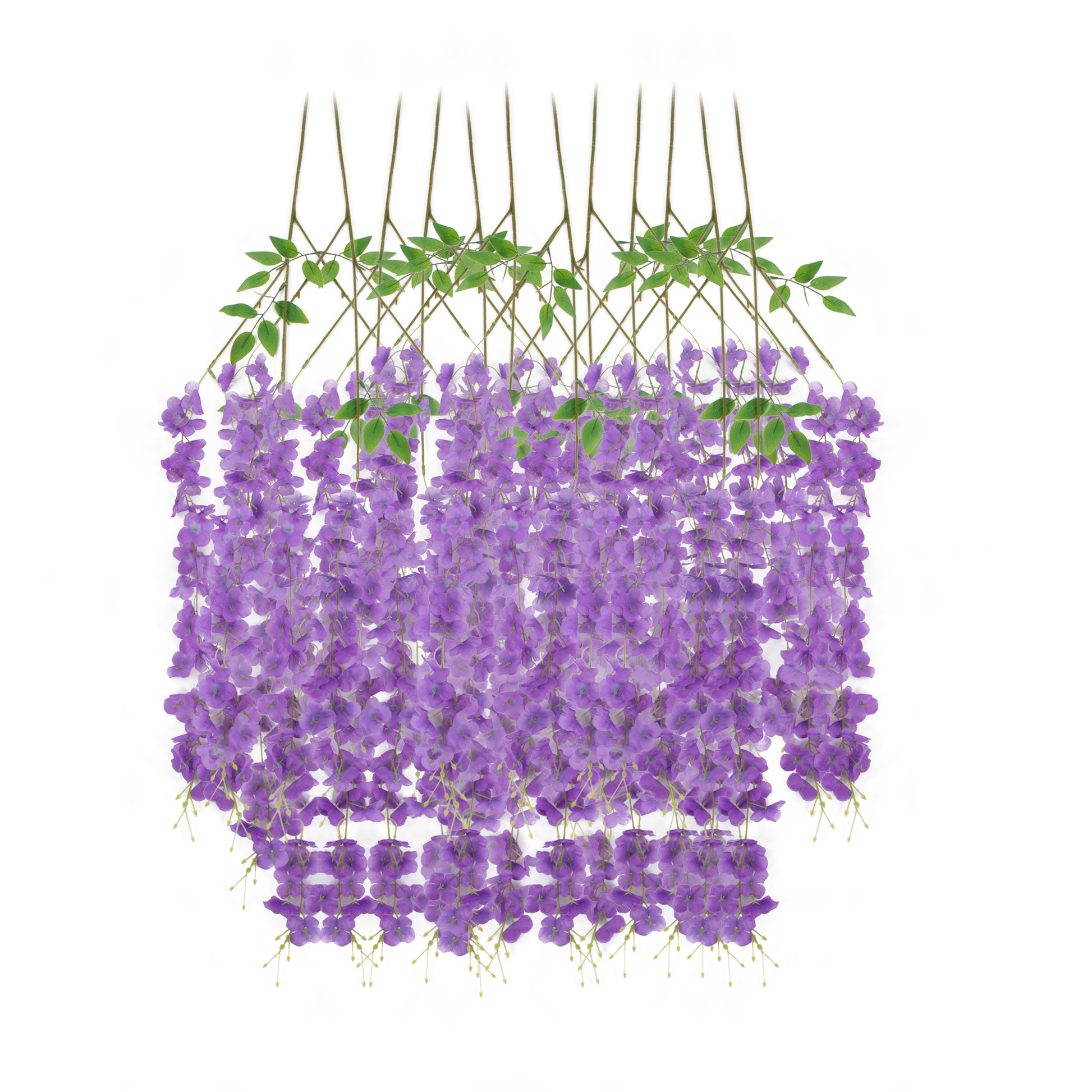 Our lavender hanging wisteria vines are crafted from high-quality artificial materials that mimic the delicate look and soft movement of real blooms. Each pack includes twelve stems, giving you ample volume for lush installations or layered floral designs.