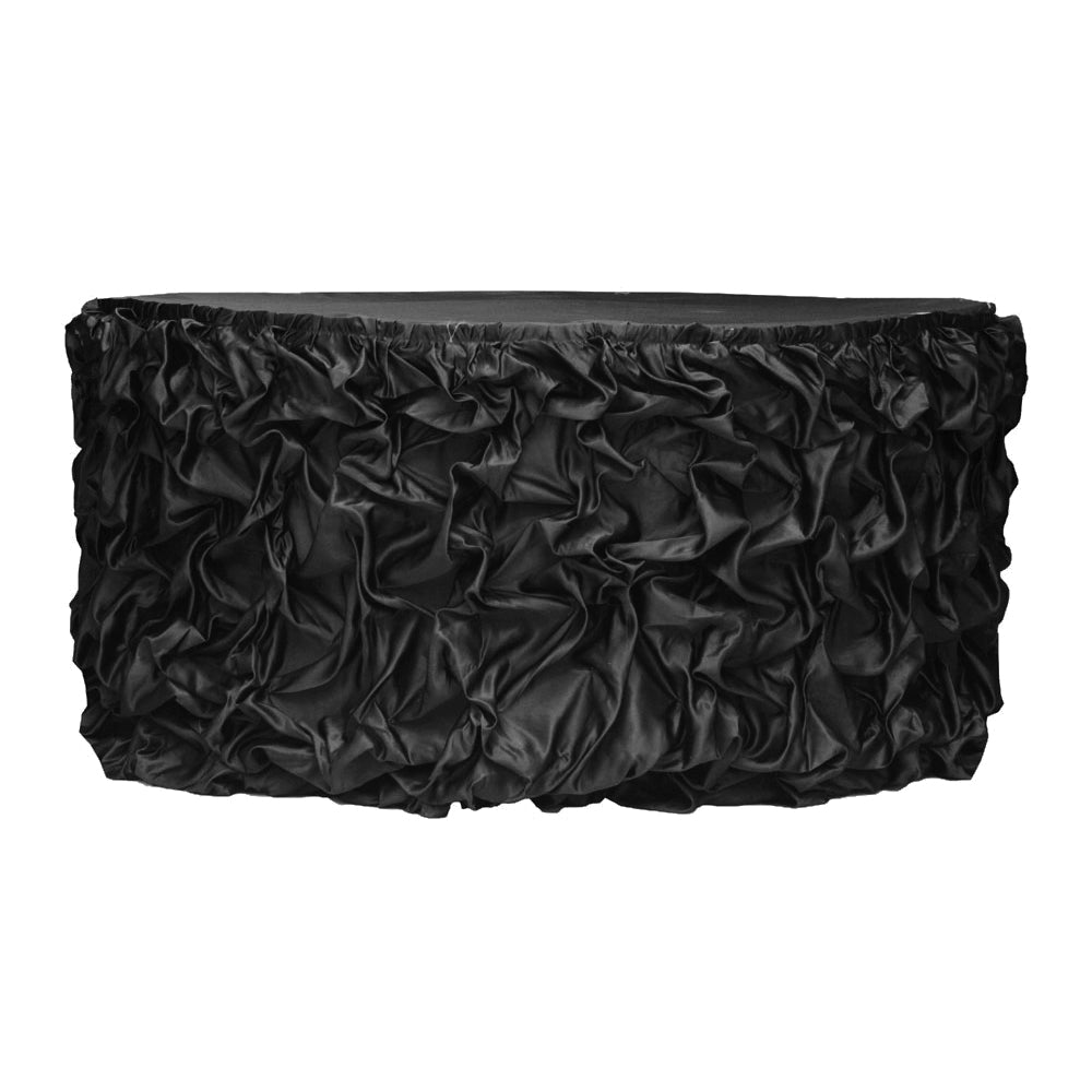 Dress your tables in gorgeous refinement with our Gathered Lamour Satin Table Skirts! Complete your tablescape with boldly colored Lamour Satin gathered into lush waves, which make the perfect detail for weddings, baby showers, or any special celebration. Our table skirts are made from Lamour Satin, which combines the silky feel of satin without the shine with the durability of polyester. As with traditional table skirts there is a 1" velcro strip sewn into the top, table-facing side, and a tablecloth or table topper will need to be purchased to cover the top of your table. Add the final touch to your special day with Gathered Lamour Satin Table Skirts!