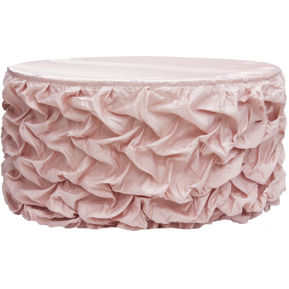 Dress your tables in gorgeous refinement with our Gathered Lamour Satin Table Skirts! Complete your tablescape with boldly colored Lamour Satin gathered into lush waves, which make the perfect detail for weddings, baby showers, or any special celebration. Our table skirts are made from Lamour Satin, which combines the silky feel of satin without the shine with the durability of polyester. As with traditional table skirts there is a 1" velcro strip sewn into the top, table-facing side, and a tablecloth or table topper will need to be purchased to cover the top of your table. Add the final touch to your special day with Gathered Lamour Satin Table Skirts!