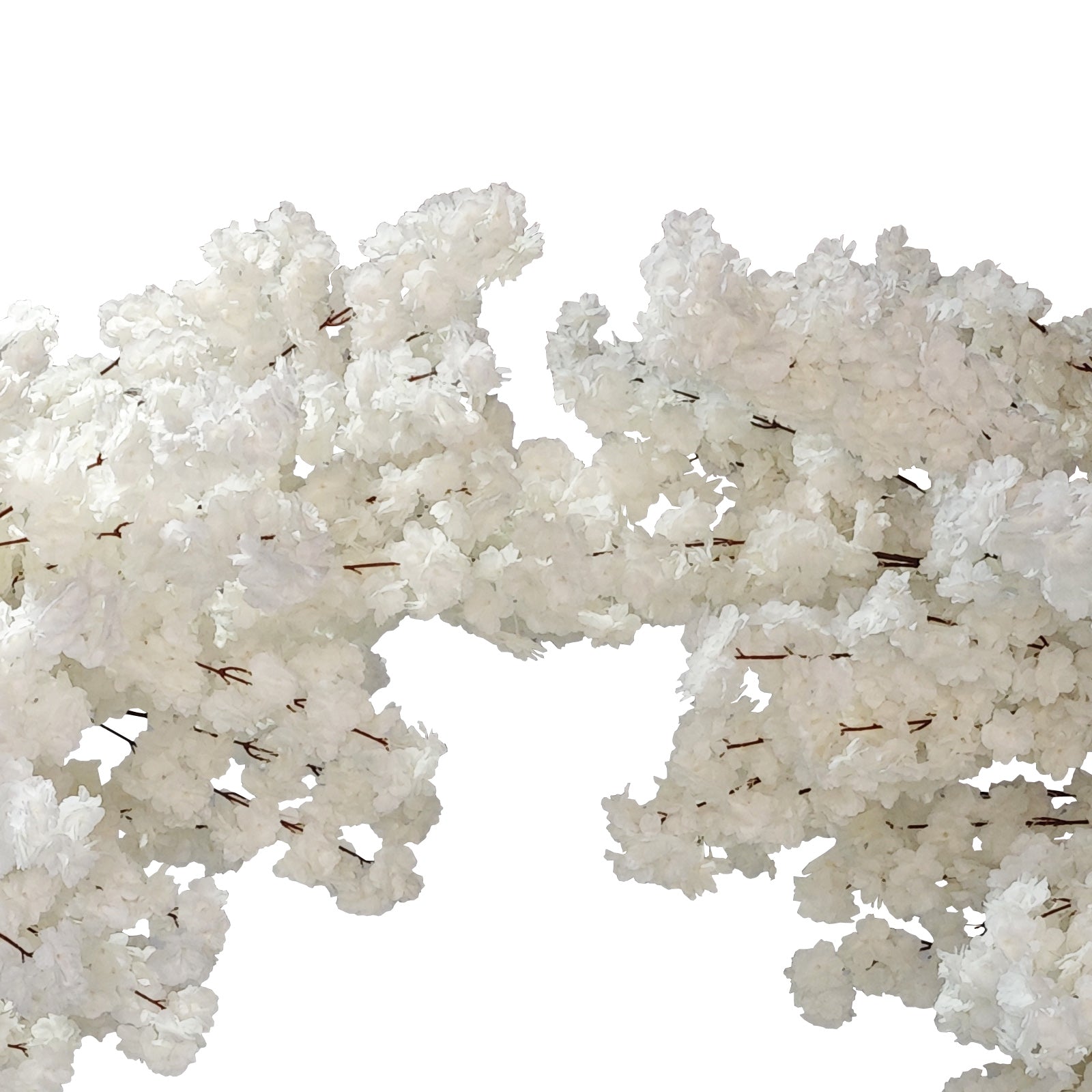 White cherry blossoms exude an ethereal and pure vibe. They symbolize new beginnings, grace, and elegance. Their timeless beauty enhances themes such as classic, minimalist, garden, or fairytale-inspired events. Whether used as a backdrop for exchanging vows or a photo booth centerpiece, this arch creates a romantic atmosphere.