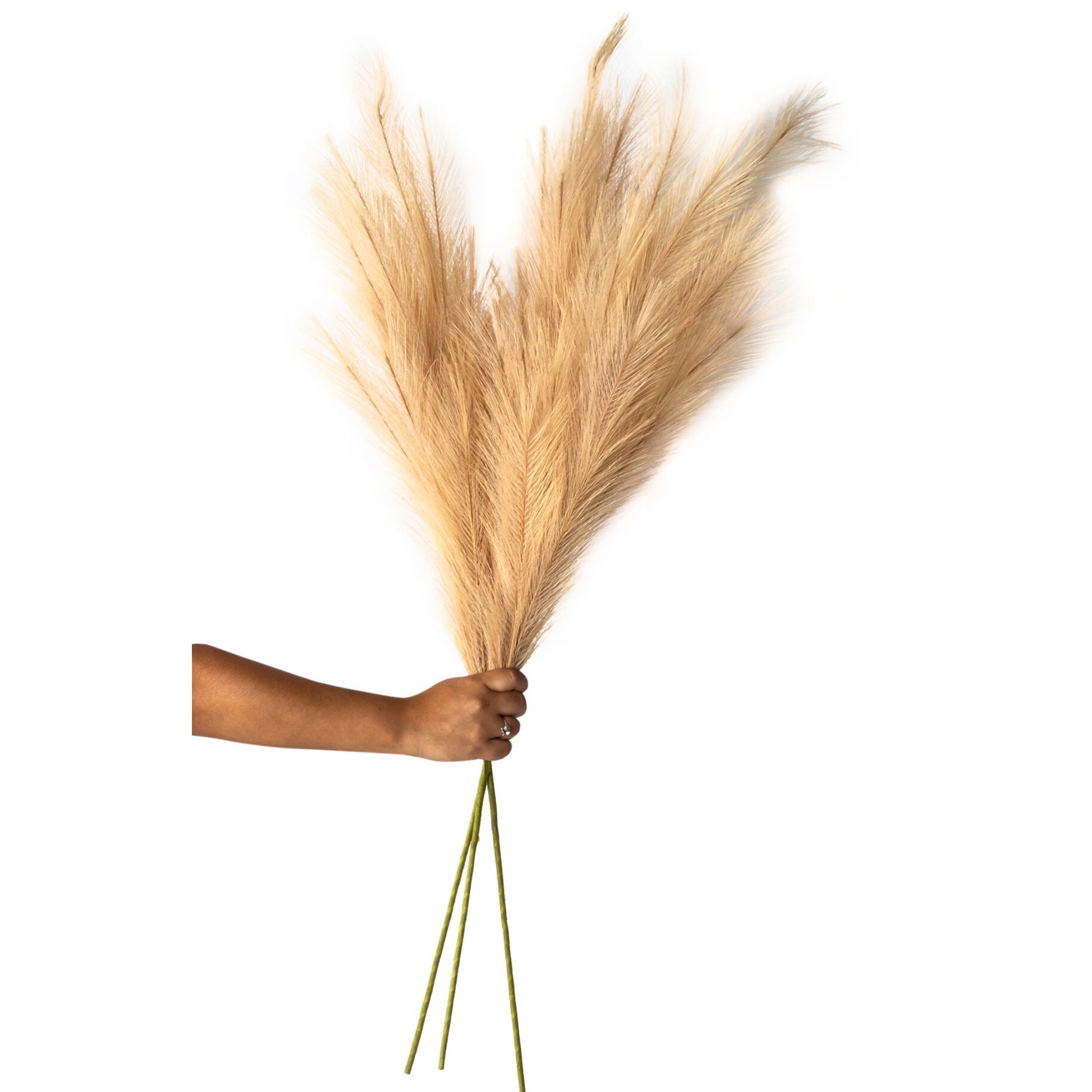 Check out the lush beauty of our 3 pcs Faux Artificial Pampas Grass Stem 43" - Champagne! The feathery plumes of pampas grass are increasingly popular for weddings, bridal and baby showers, plus home decor use. The versatile pampas grass sprays are trending for their innate ability to effortlessly bring any space a cozy, minimal, and graceful boho look. Fake pampas grass is perfect for achieving a natural aesthetic for beach, country-chic, bohemian, contemporary, and glamorous themes. The fluffy allure and neutral tones are a perfect look for fall events and decor. The appeal of pampas grass is that it’s an instant style-maker in that it does all the heavy lifting by creating a scene-stealing display that looks stunning alone or when paired with complementing accents. This trendy poofy grass promotes a bountiful, natural drama in a mutes hue that brings about a textural appeal that always commands attention.