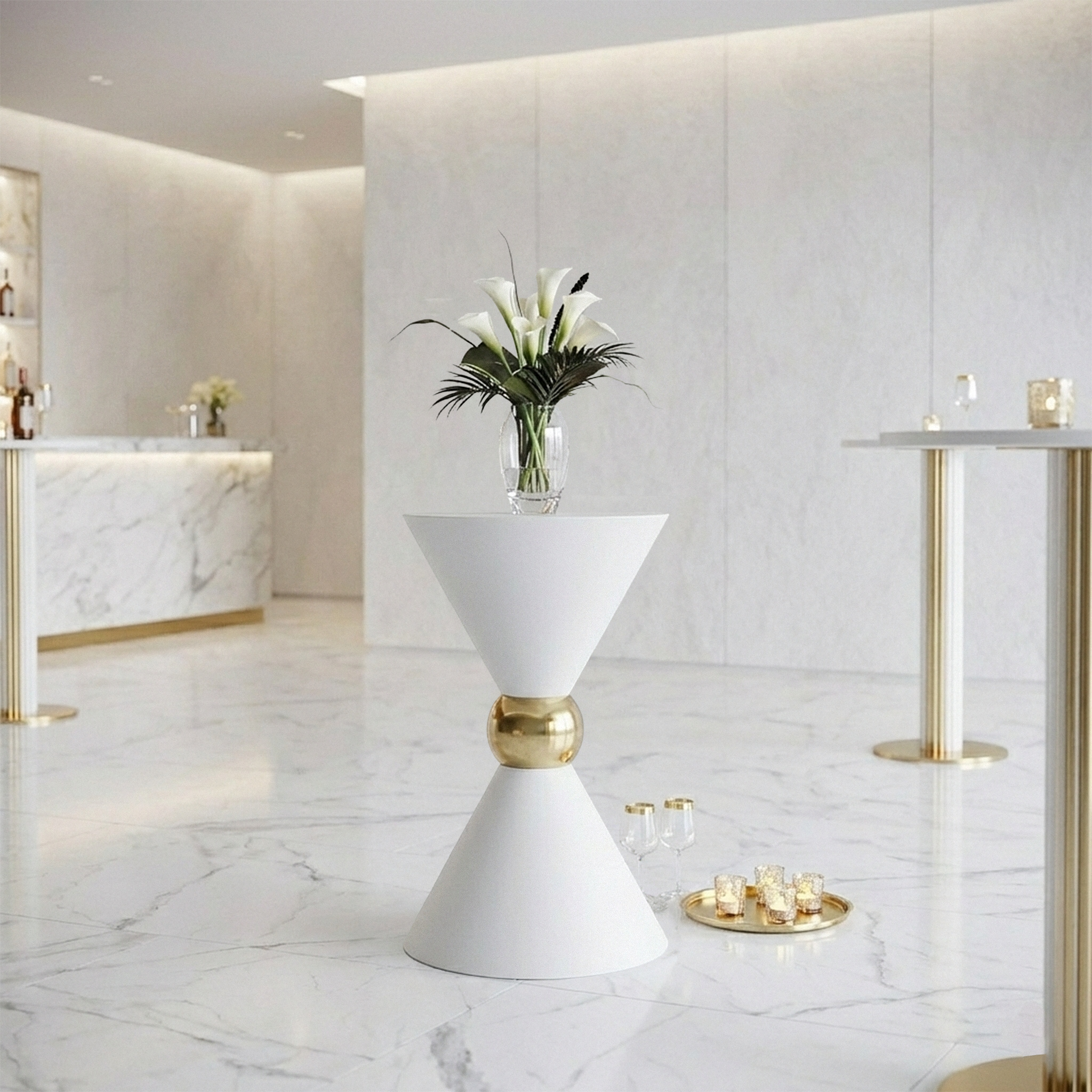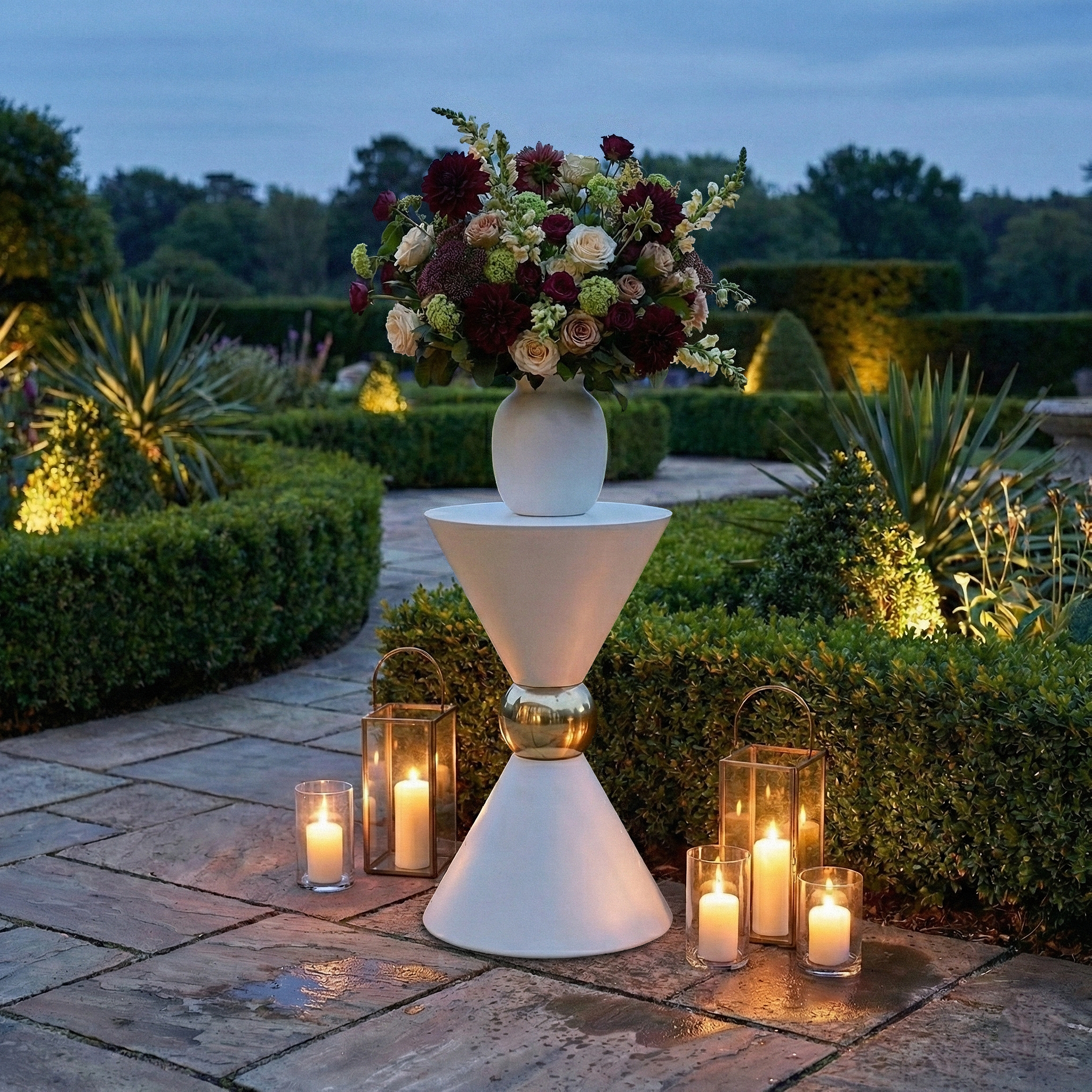 31" Tall Hourglass Plinth Pedestal Stand - White