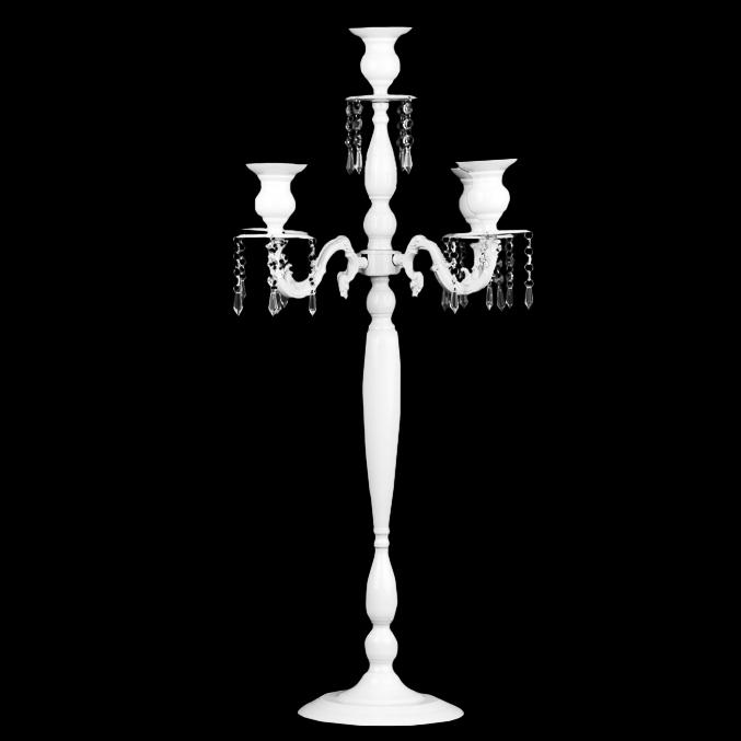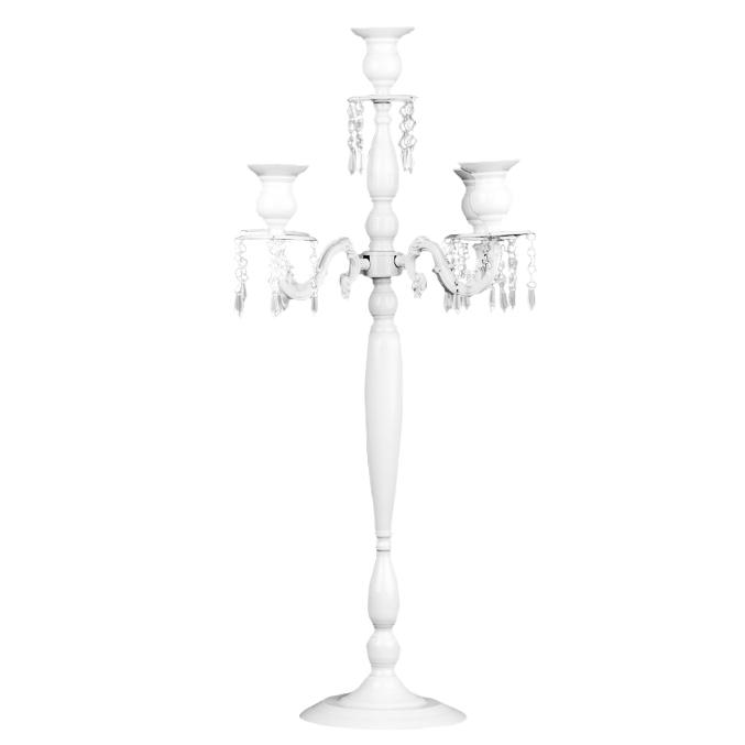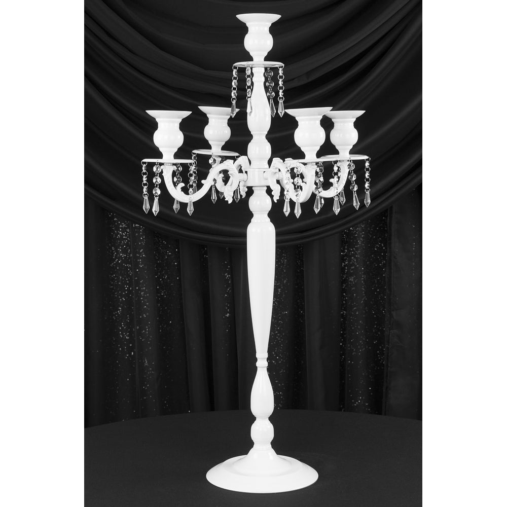 Reach new heights of glamour for your wedding, special event, or home decor with our 36" Candelabra Tabletop Centerpieces! Each of the of the candelabra's five elegant arms holds one candle holder and has four inches of acrylic crystals decorating the candle holder from below. Fill your candelabra with flowers, candles, LED Lights, and more!