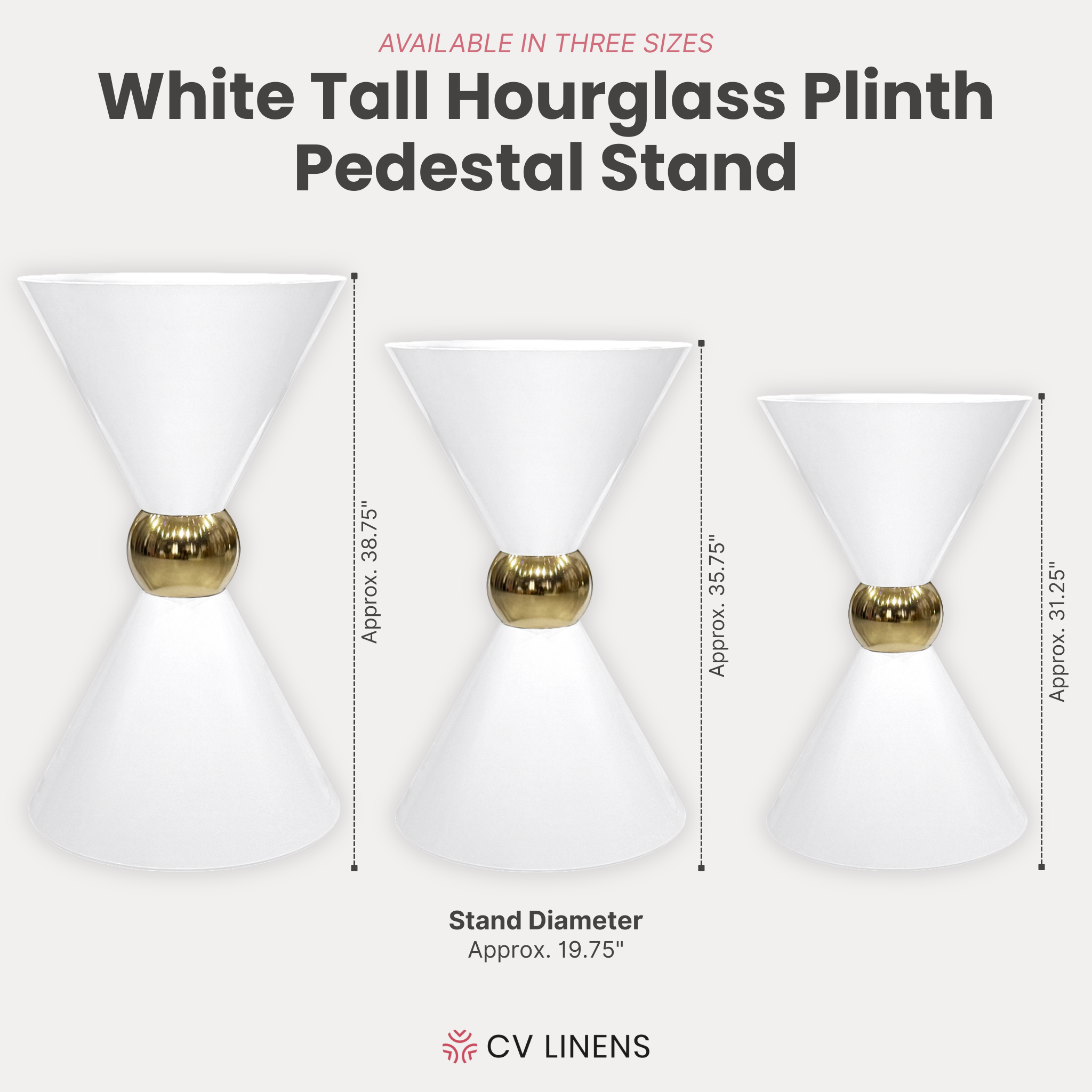 Add our 38" Tall Hourglass Plinth Pedestal Stand – White to your cart today and elevate your event design instantly. This striking metal display stand brings height and undeniable luxury to your setting, making every decor accent look stunning. Whether you are planning a wedding, gala, birthday celebration, or corporate launch, this pedestal delivers that upscale finish that sets your event apart.