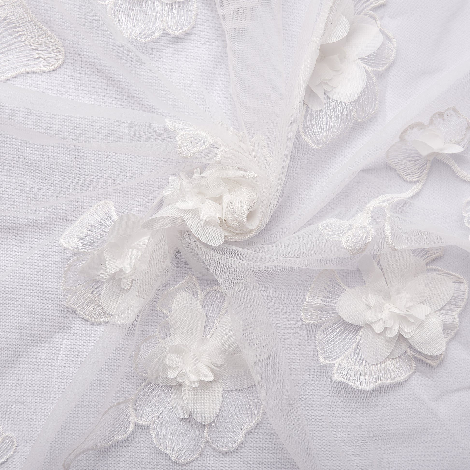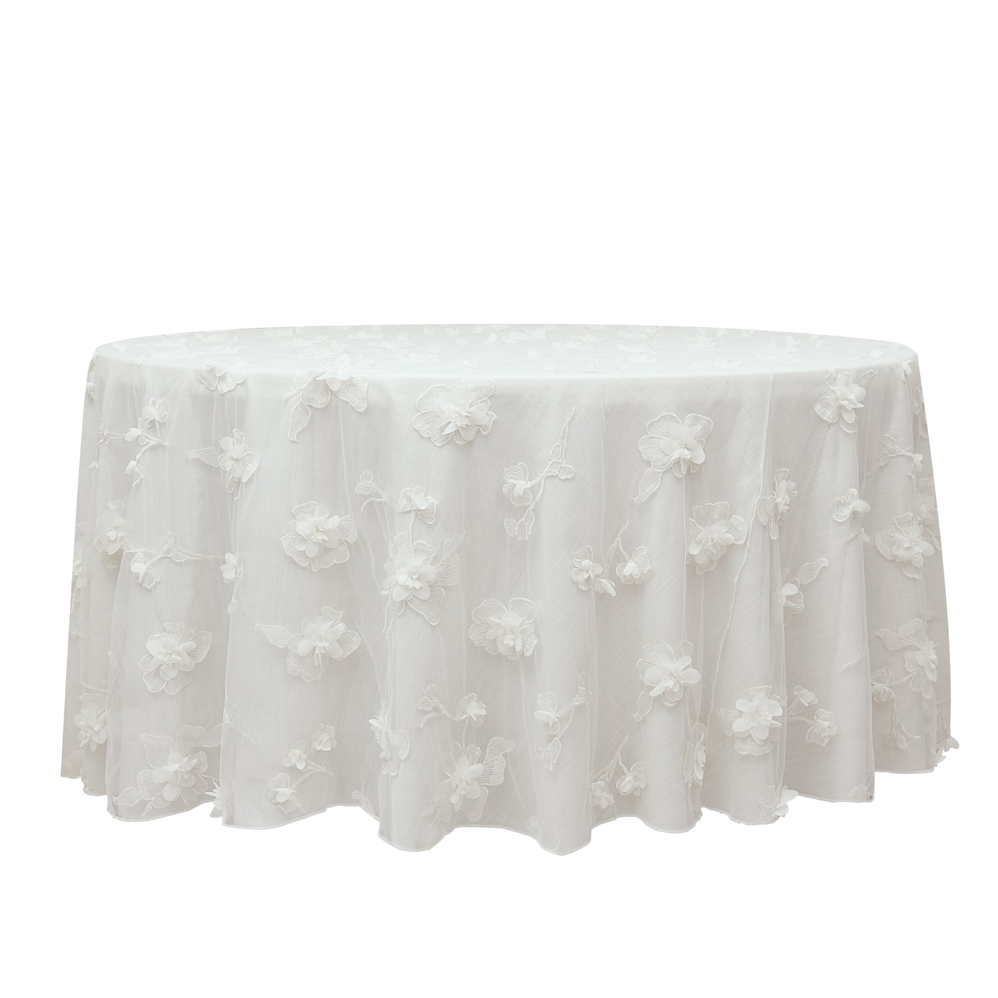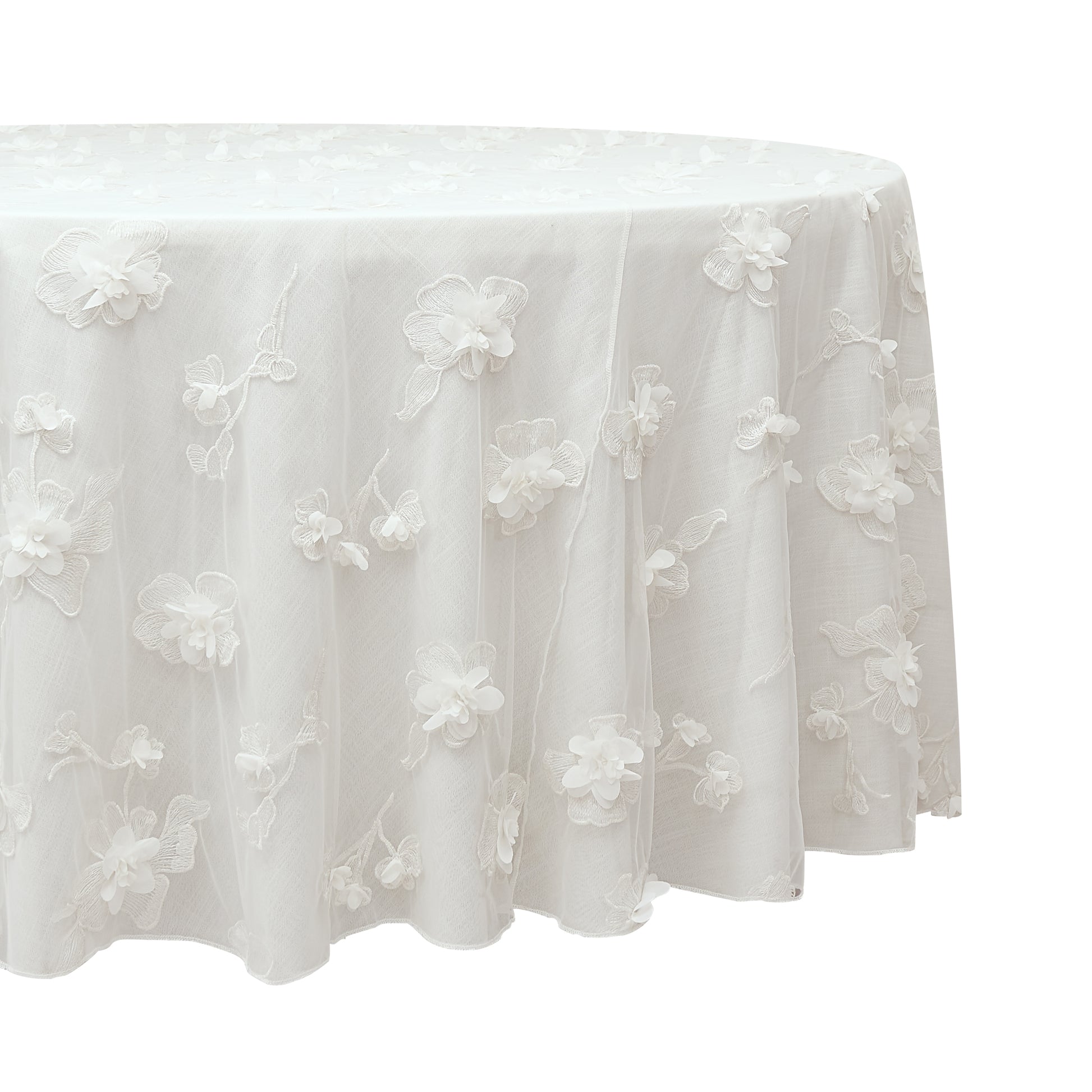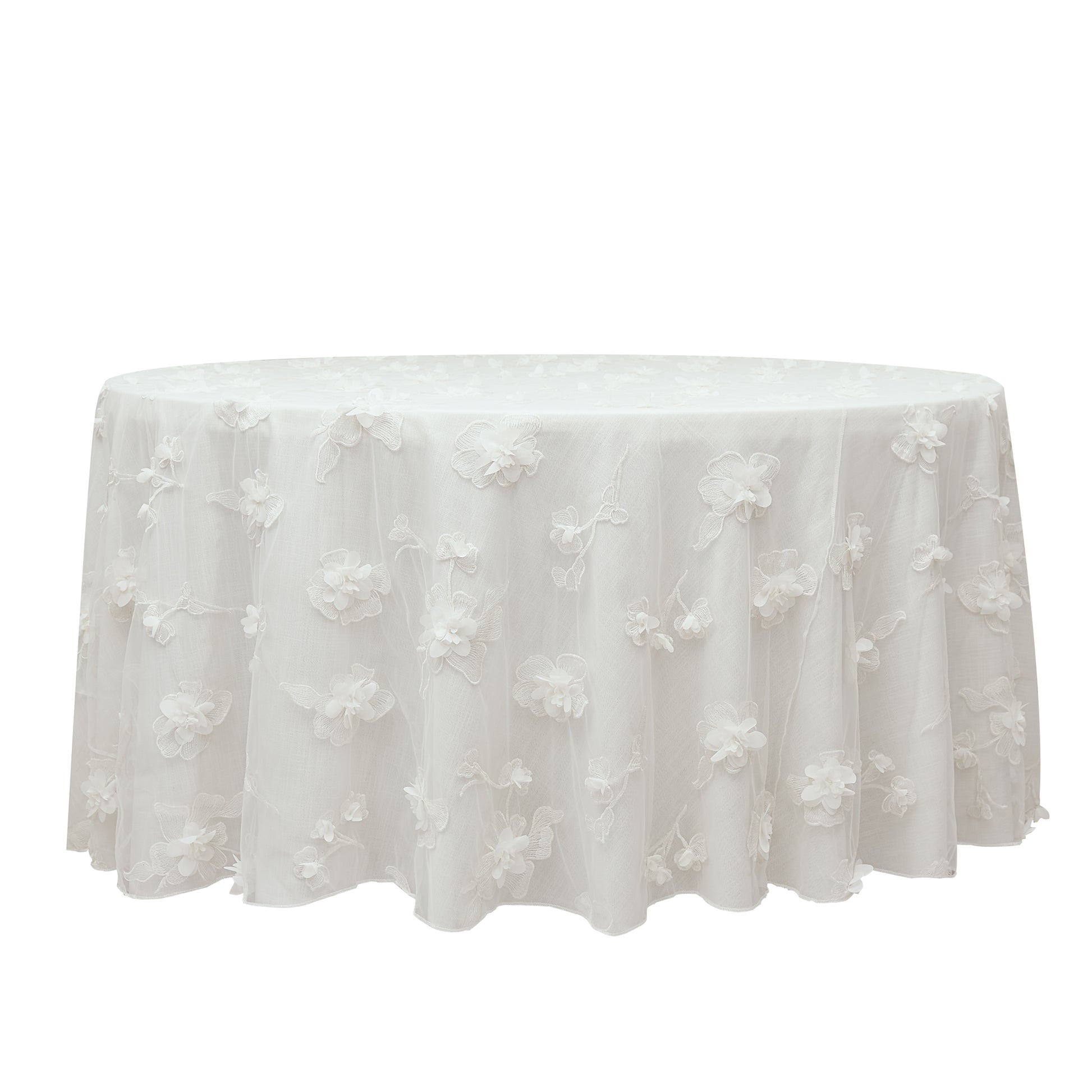 3D Gardenia Embroidery Sheer 120" Round Tablecloth - White