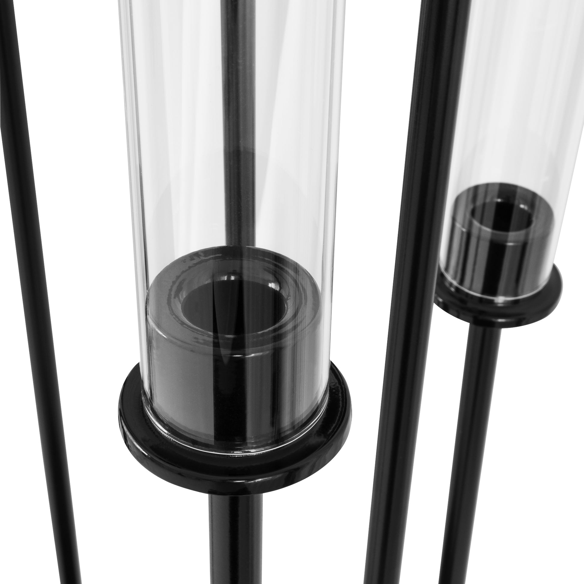 Made of durable black-plated metal these candelabras are easy to set up and maintain. Simply fix the glass cylinder to the base and then place singular candles on each arm. Adding candelabra centerpieces is an effortless way to elevate your event decor instantly.