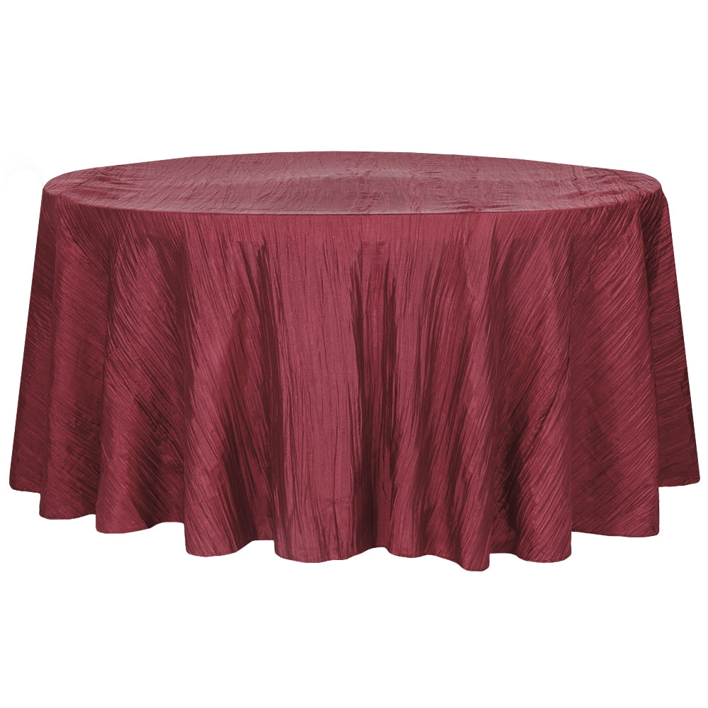 Accordion Crinkle Taffeta 132" Round Tablecloth - Burgundy