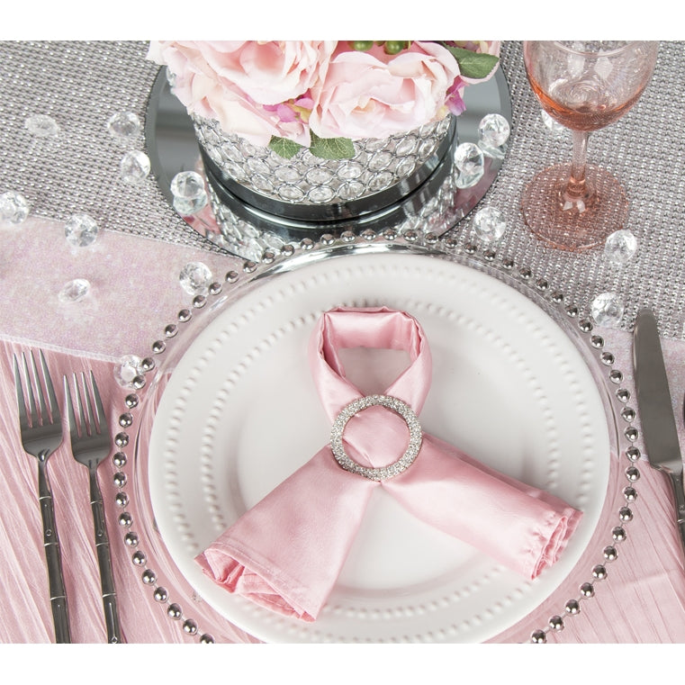 Our exquisite pink accordion crinkle taffeta round tablecloth can complement a range of accent colors! Pair some coordinating decor pieces with this pink tablecloth for a stunning setup!