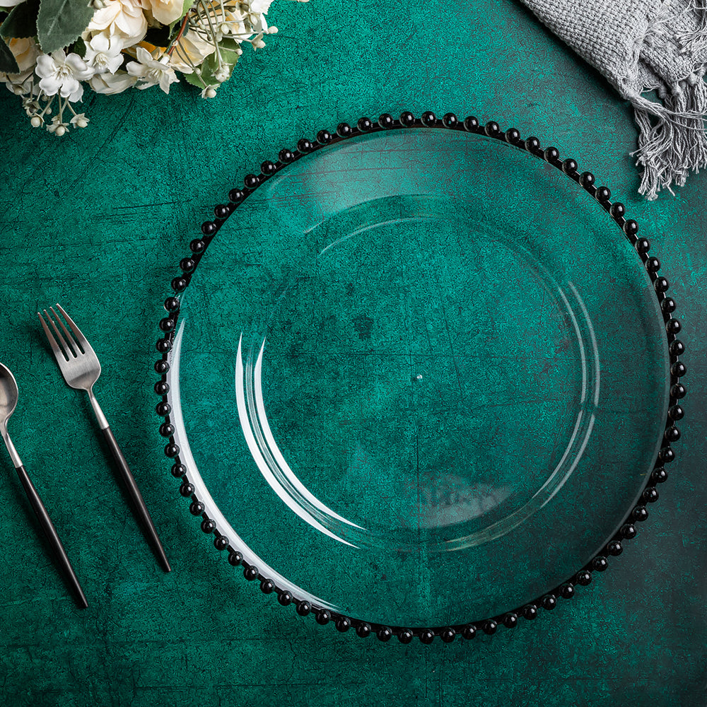 Acrylic Beaded 13” Round Charger Plate - Black
