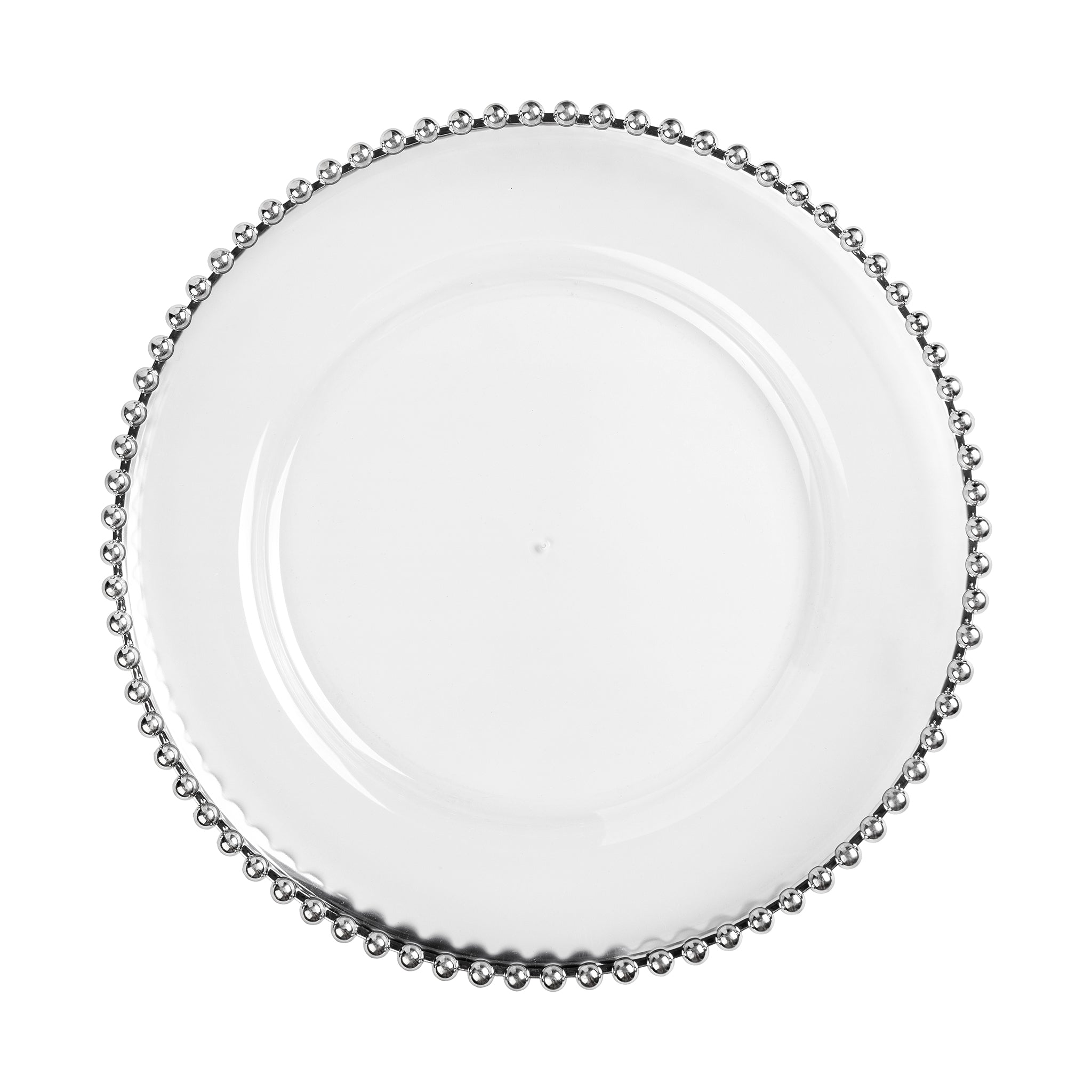 Acrylic Beaded 13” Round Charger Plate - Silver