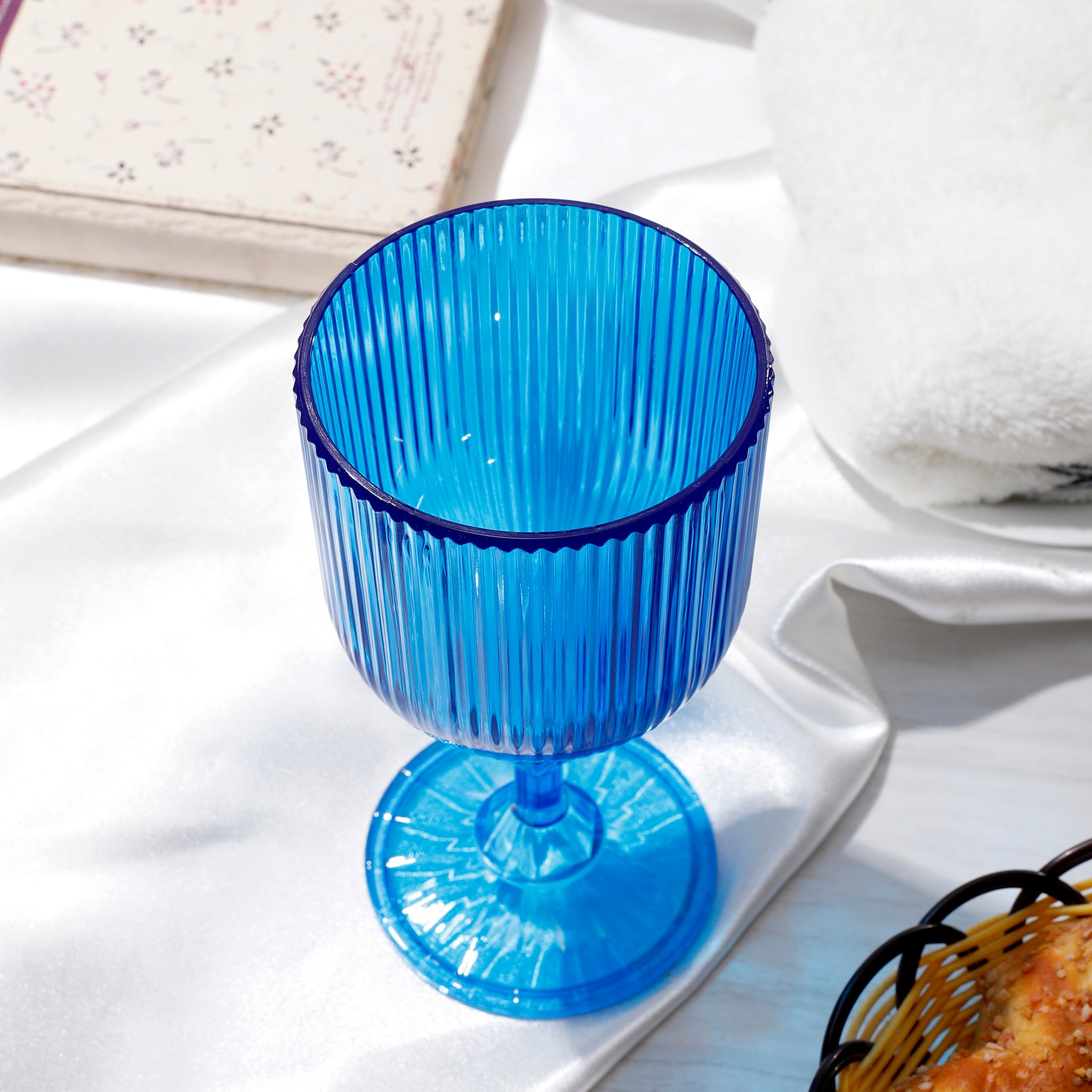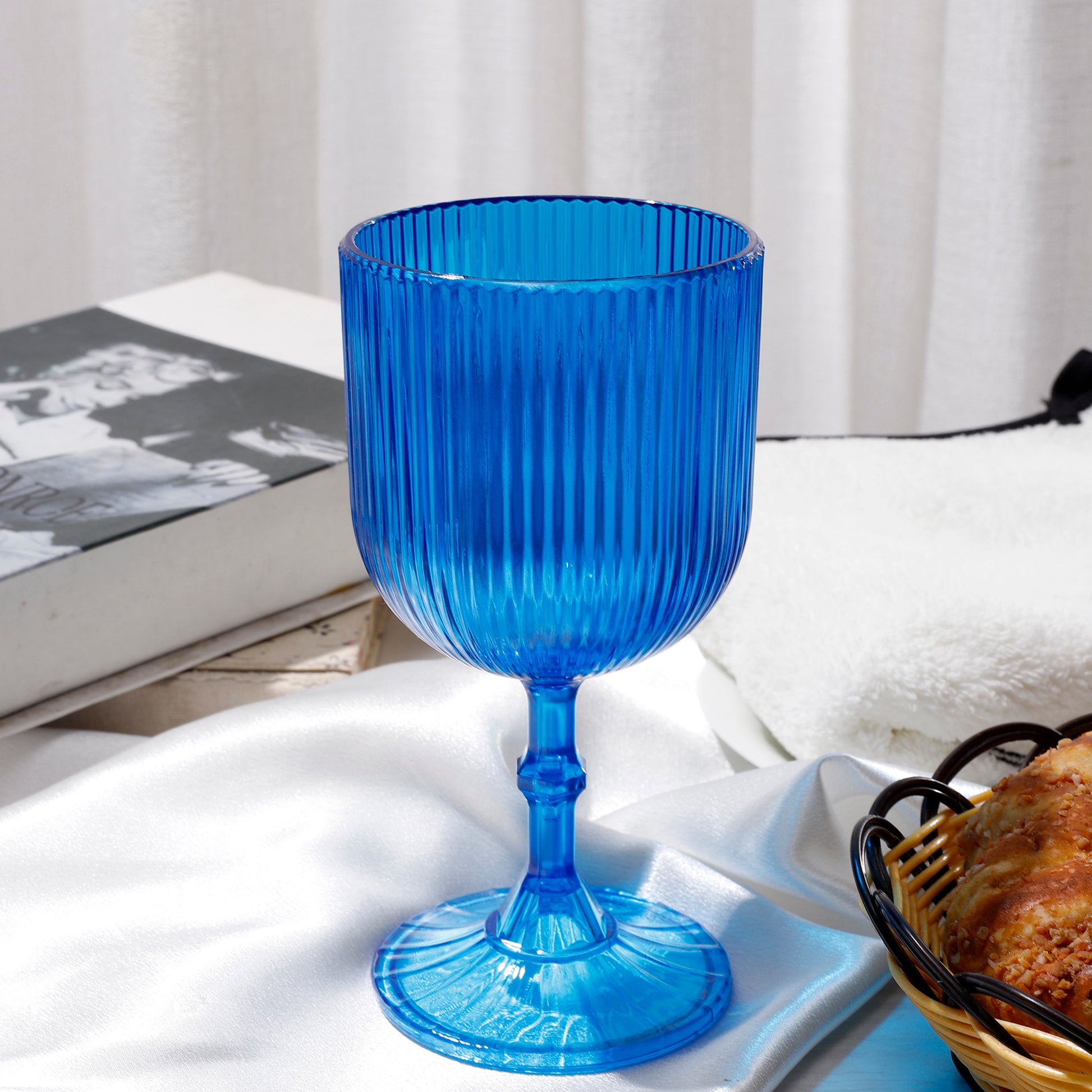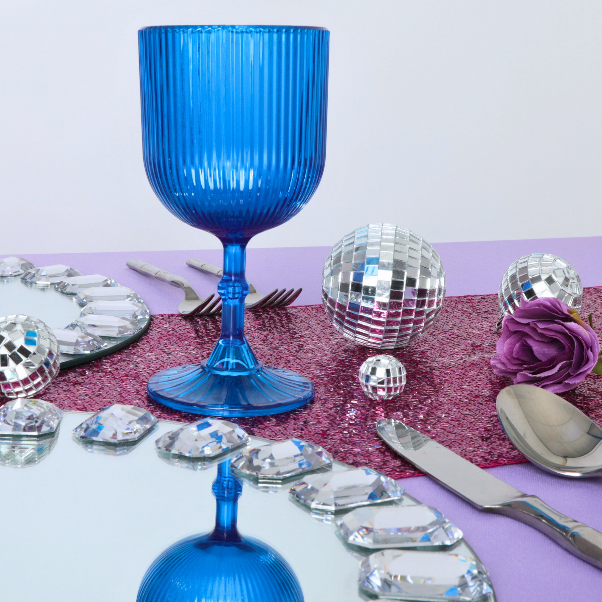 Combine these Blue Acrylic Wine Goblets with complementary colors like white or silver for an elegant look, or with contrasting colors like yellow or orange for a vibrant tablescape.