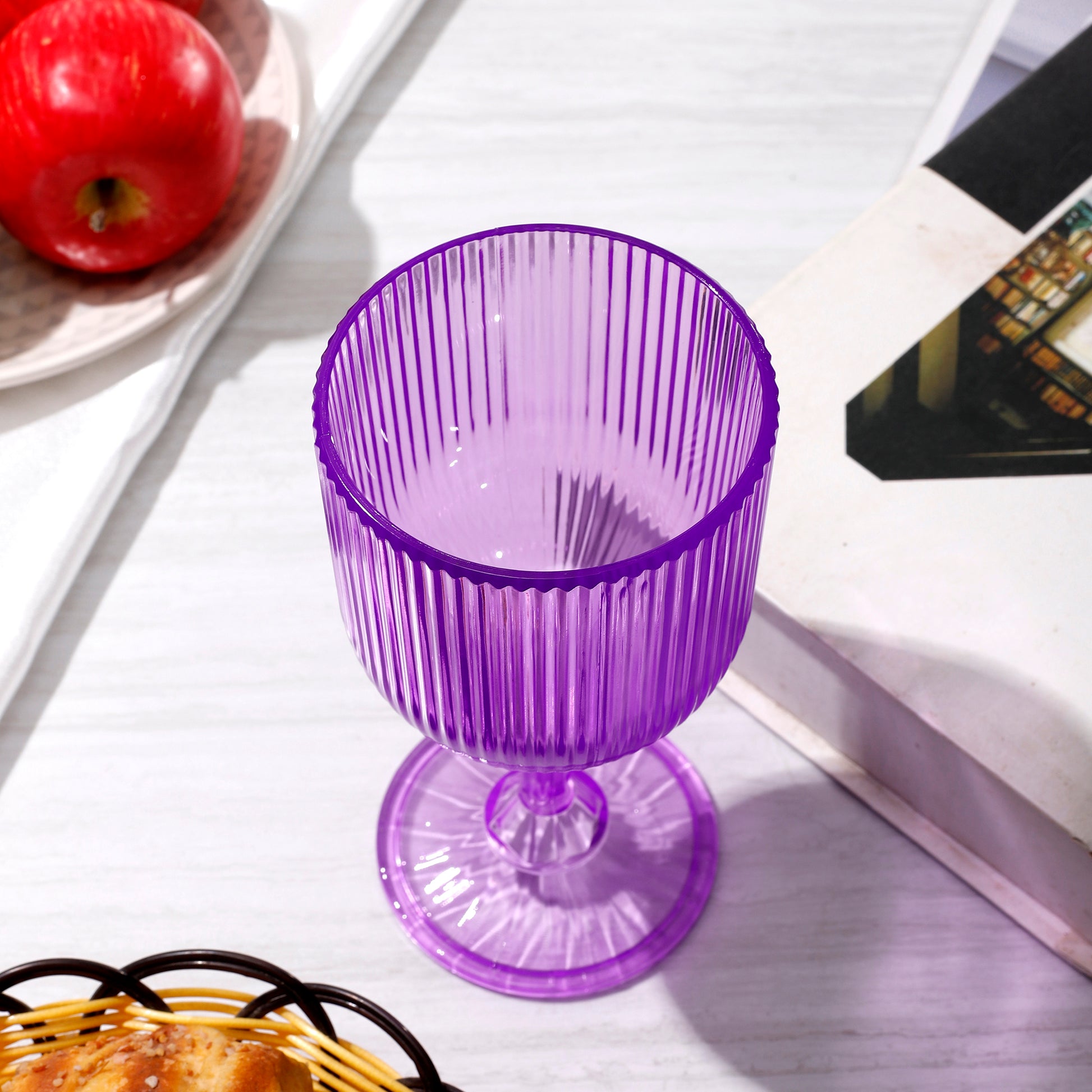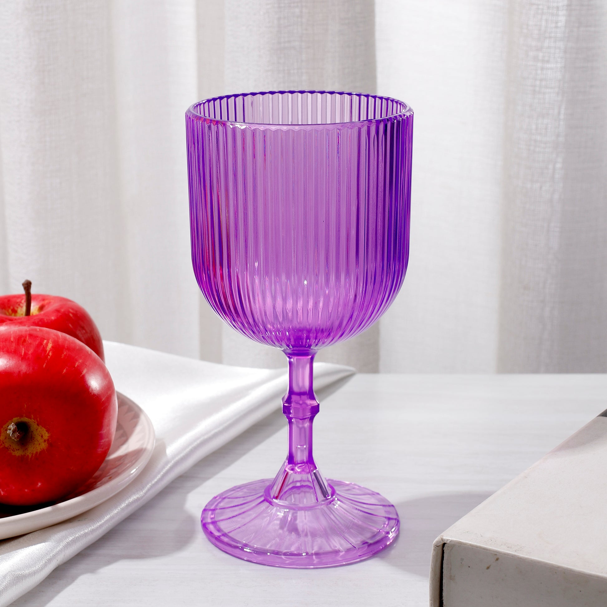 Treat yourself to a touch of class with our 6 pieces per pack of 11 oz Lavender Acrylic Wine Goblets. It's not just a cup—it's an experience. With its cool ripple design, it adds a modern twist to any get-together. Whether you're hosting a party or just relaxing at home, this goblet is sure to make a statement.