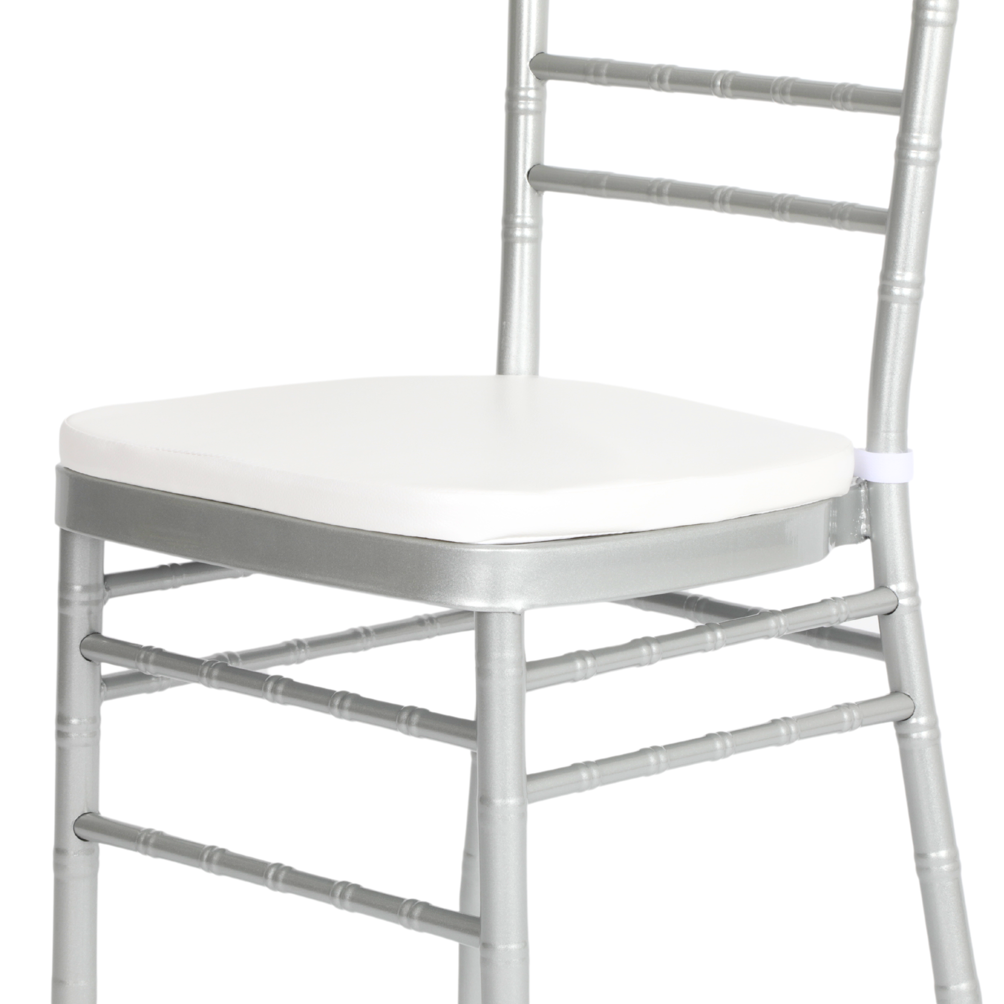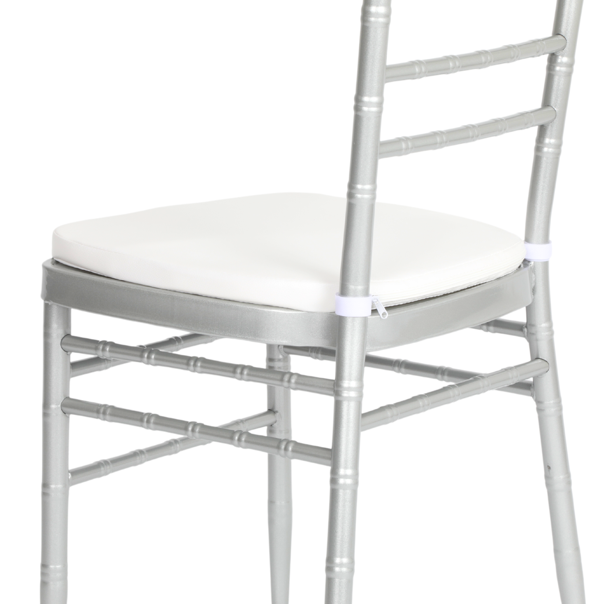 Add soft chair cushions to make your metal Chiavari chairs more comfortable for guests. Choose cushions that match your event's color scheme or theme.