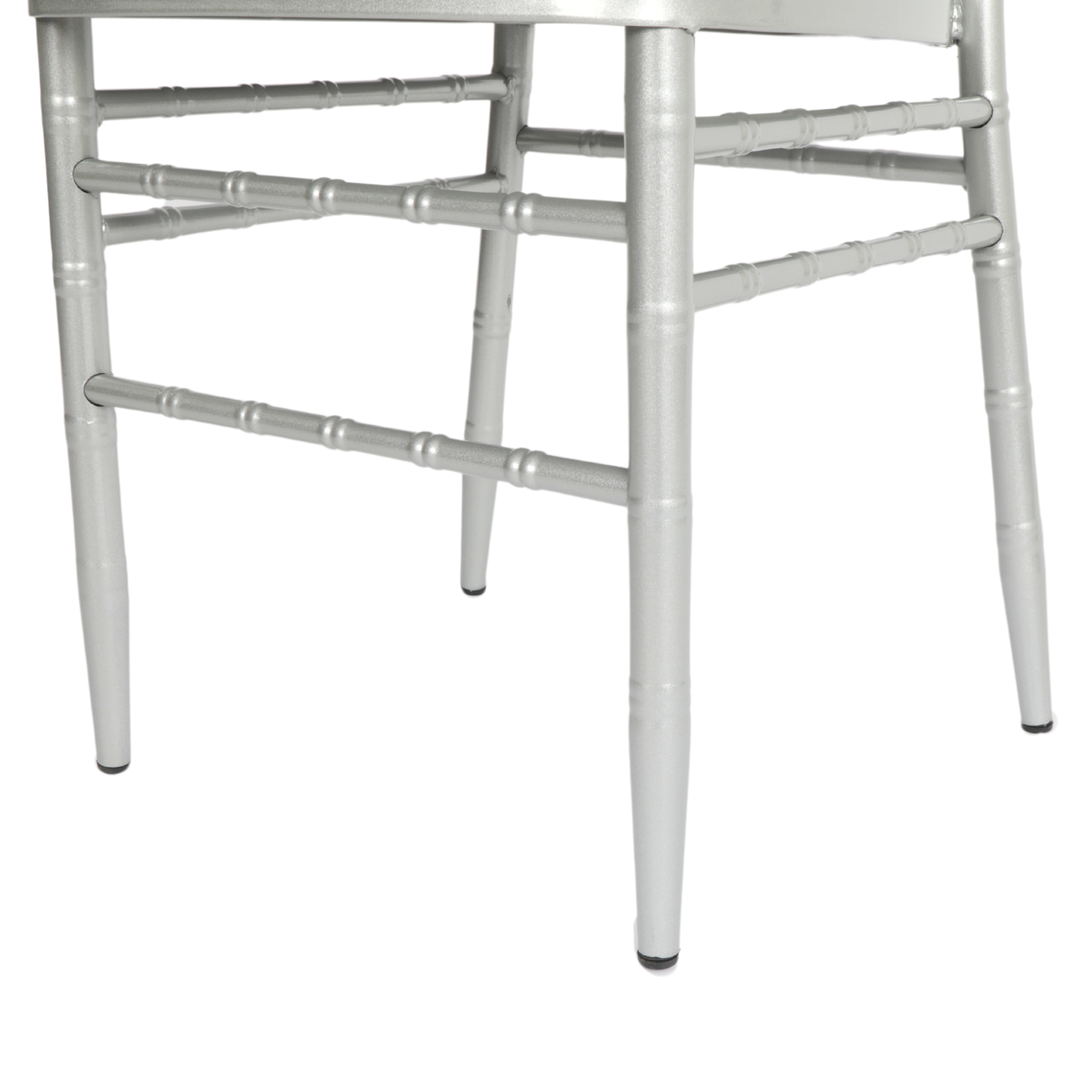 Each of our aluminum Chiavari chairs is crafted from 1.2 mm thick metal that ensures both quality and grace. The design features seven bars on the chair's feet, ensuring sturdy construction and elegant styling.