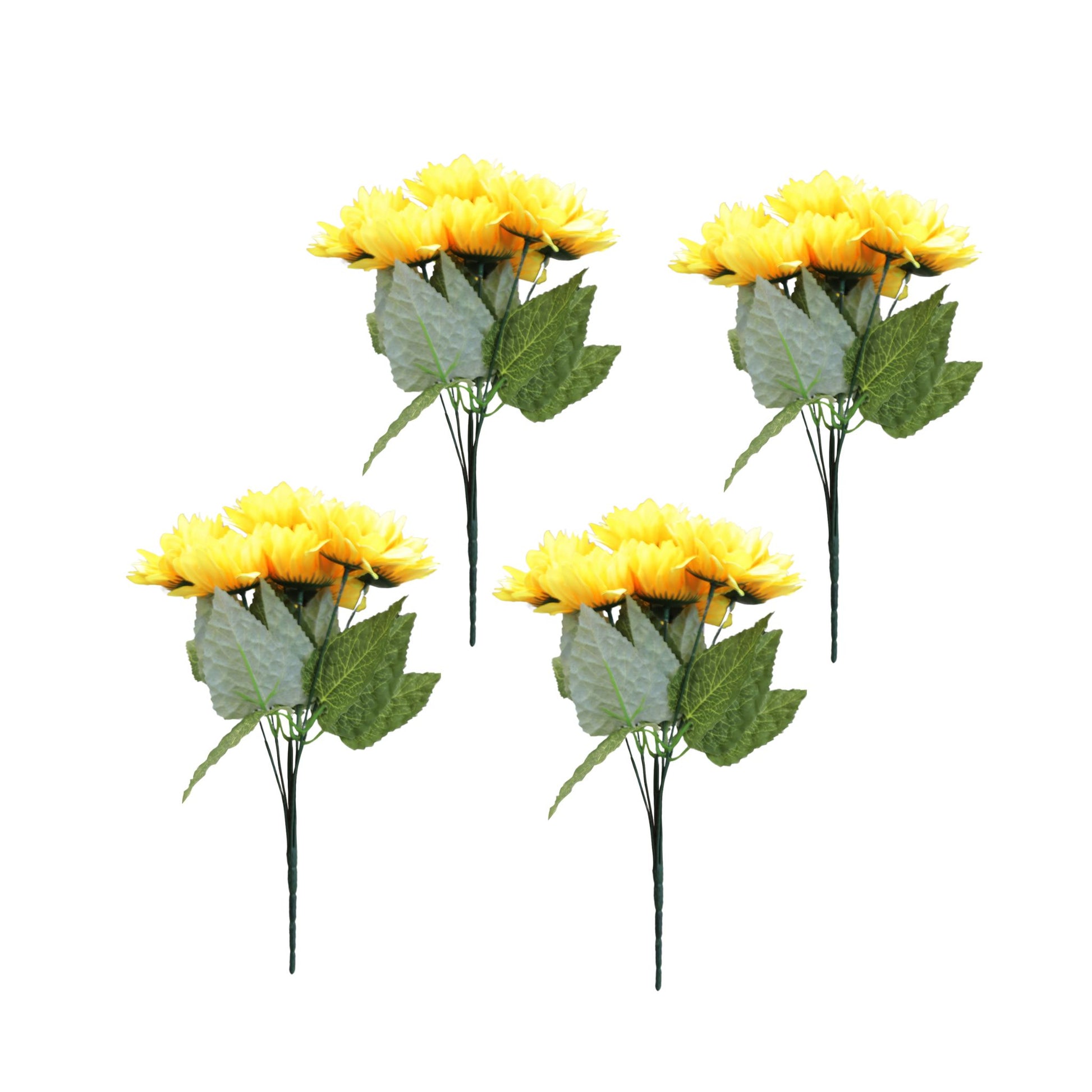4 Bundles of Artificial Sunflower Stems (28 heads) - Yellow
