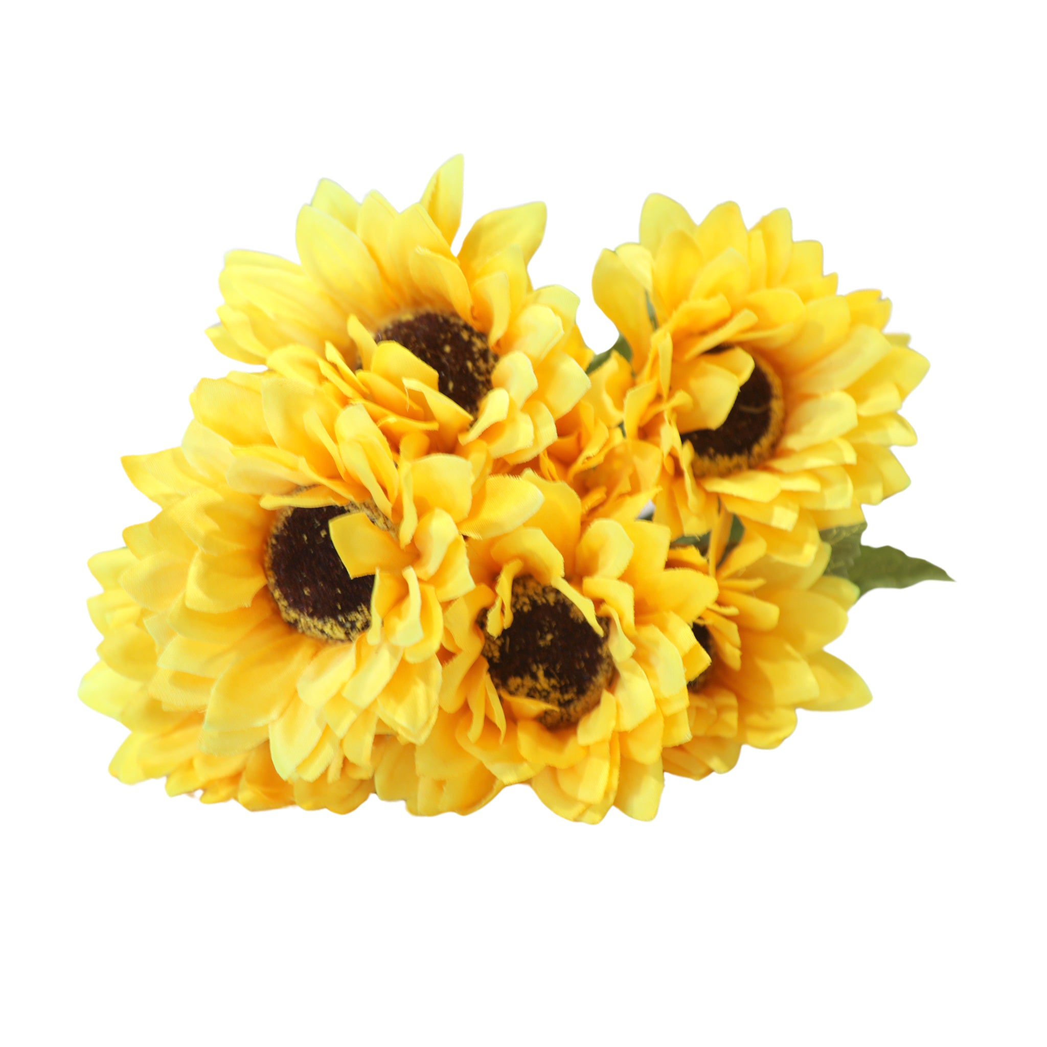 Bring perpetual sunshine into your space with CV Linens™ premium artificial sunflower bundles. These faux flowers are made carefully to look like real sunflowers.