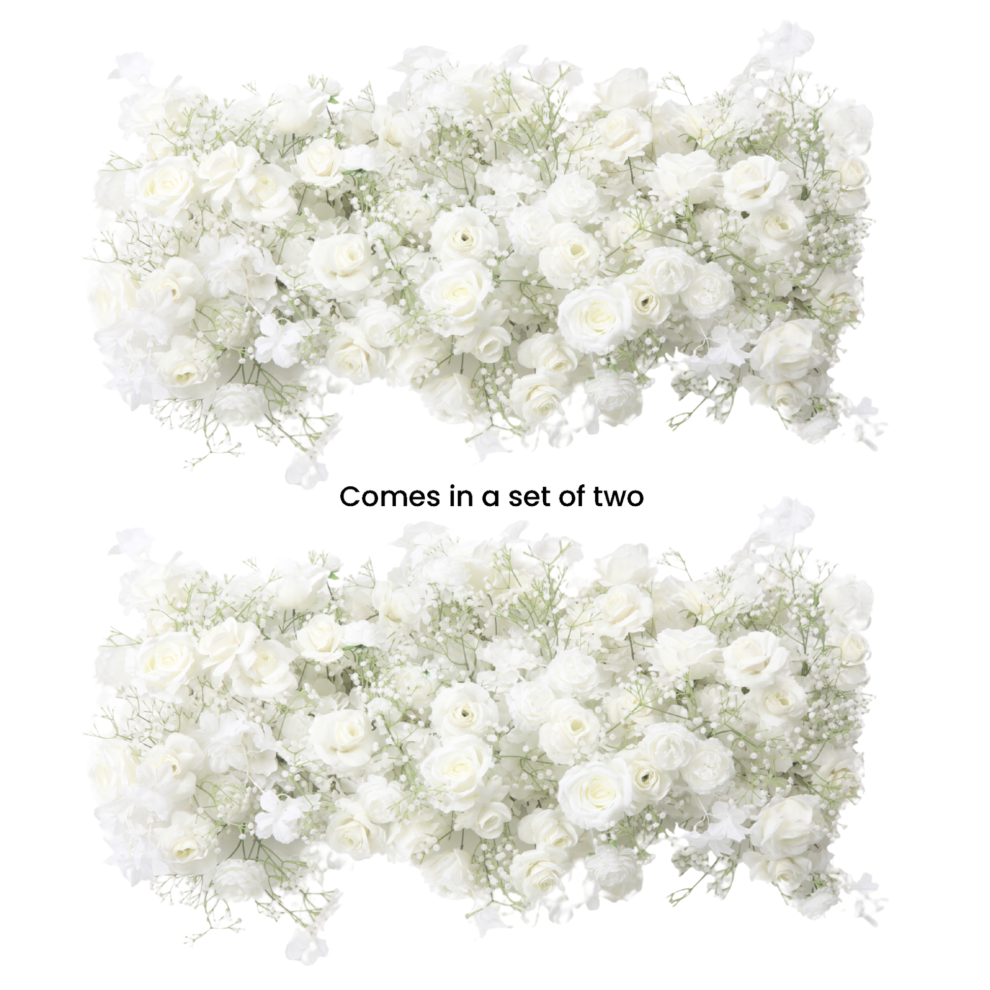 2 pcs/pk Premade Rose and Baby's Breath Flower Arch Backdrop/Table Runner Decor - White