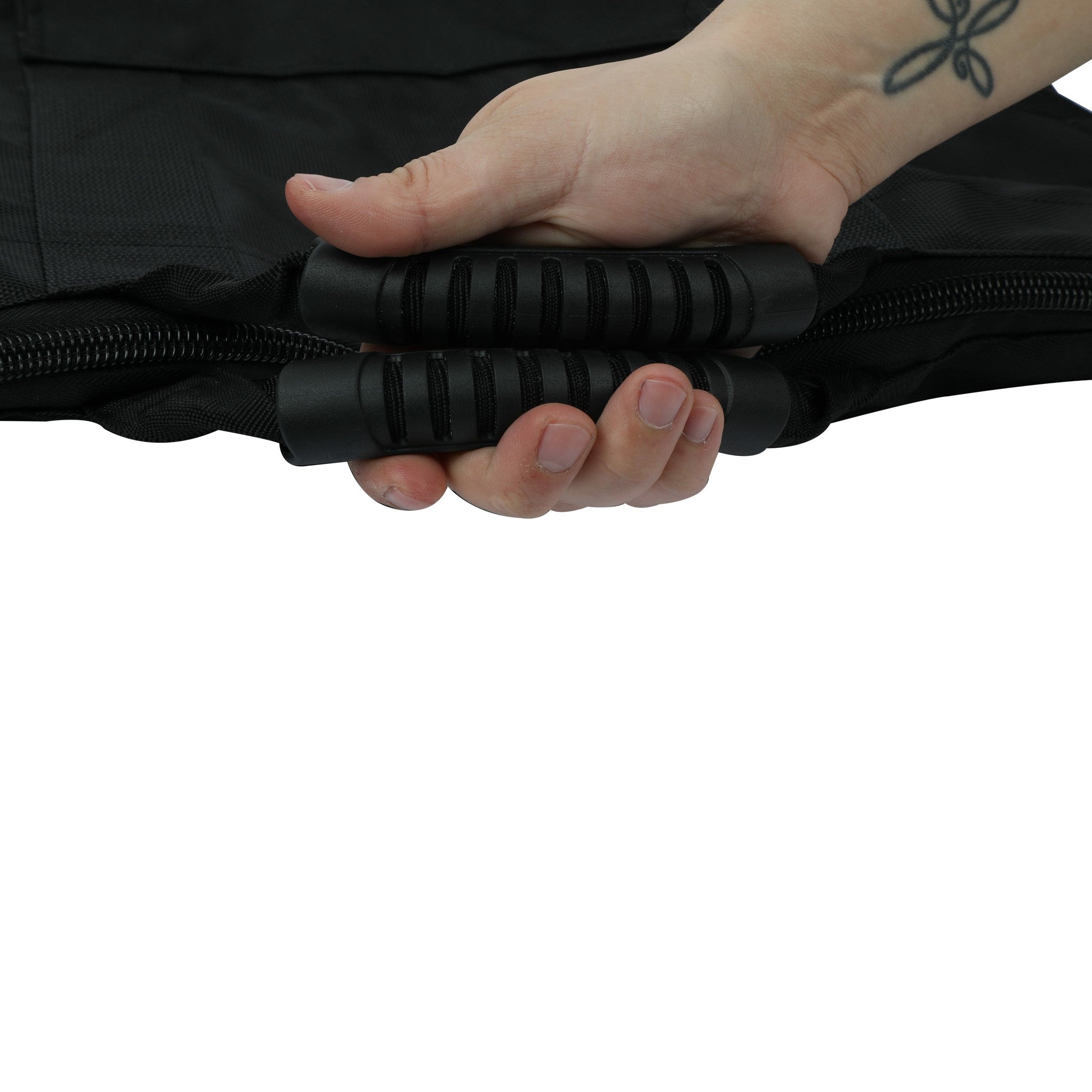 - Molded plastic handles with webbing
