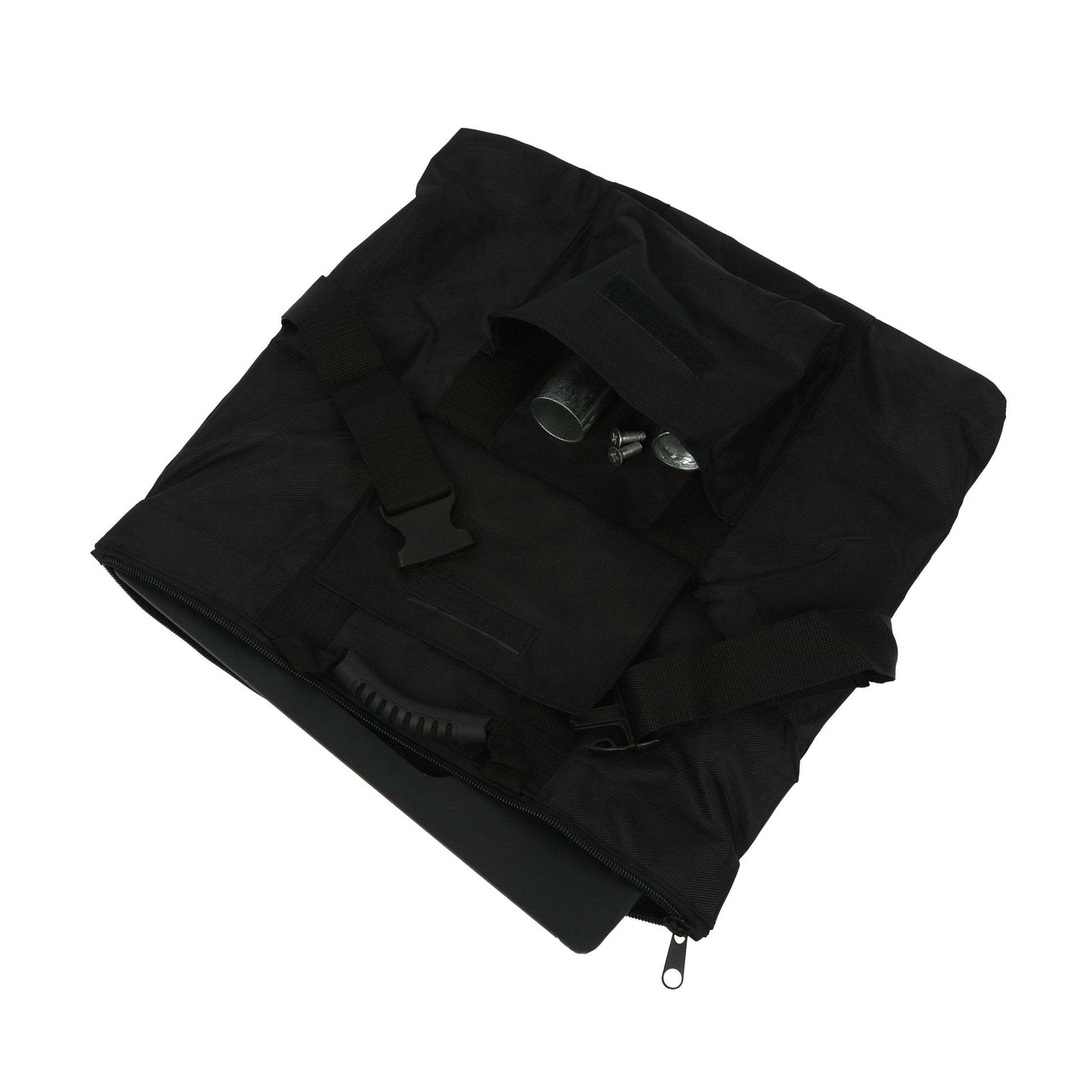 - Durable zipper that allows for easy access to your pipe and drape bases, while keeping them securely stored Heavy-duty buckle strap is also included for added security.