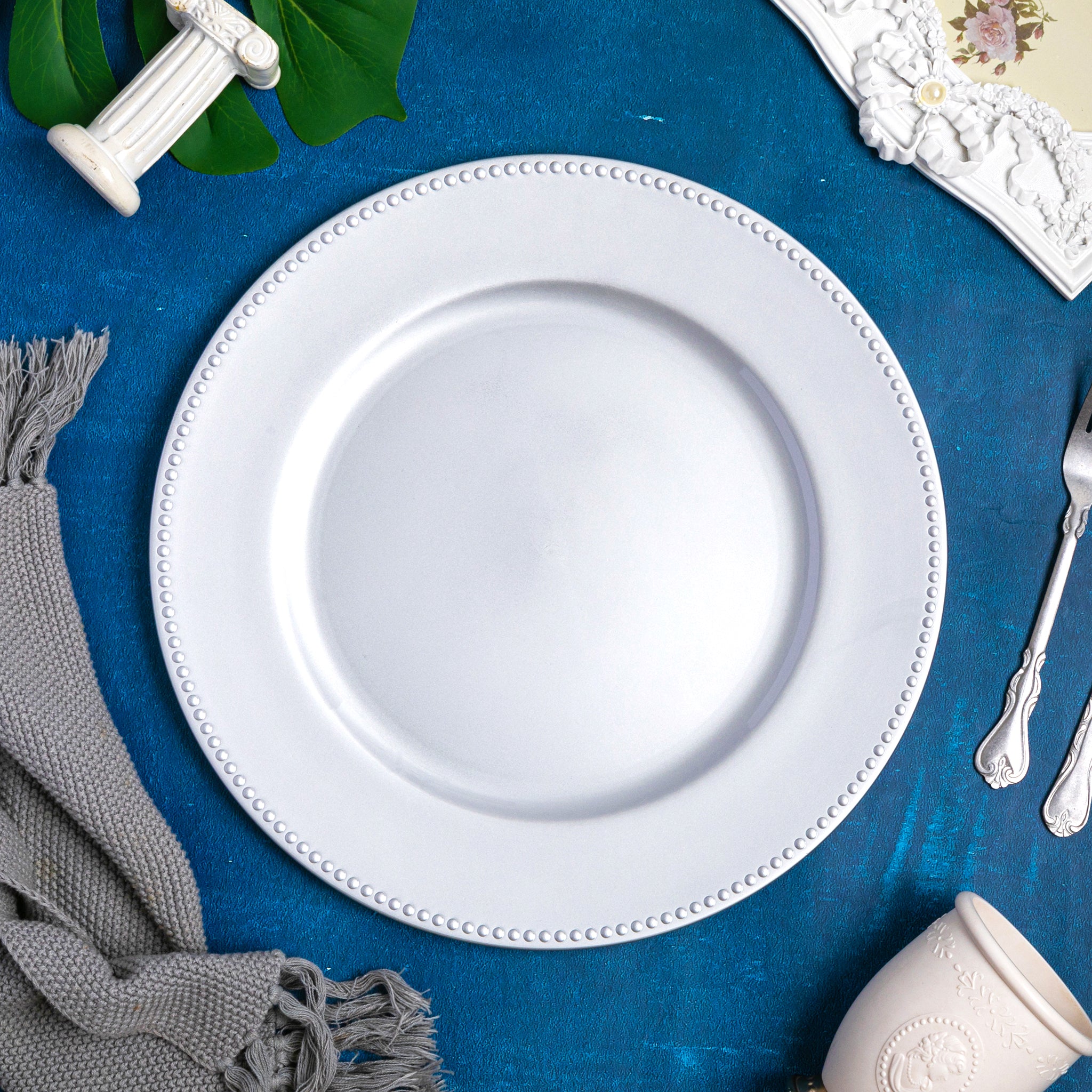 Dine in Luxury with Silver Beaded Round 13" Charger Plates
