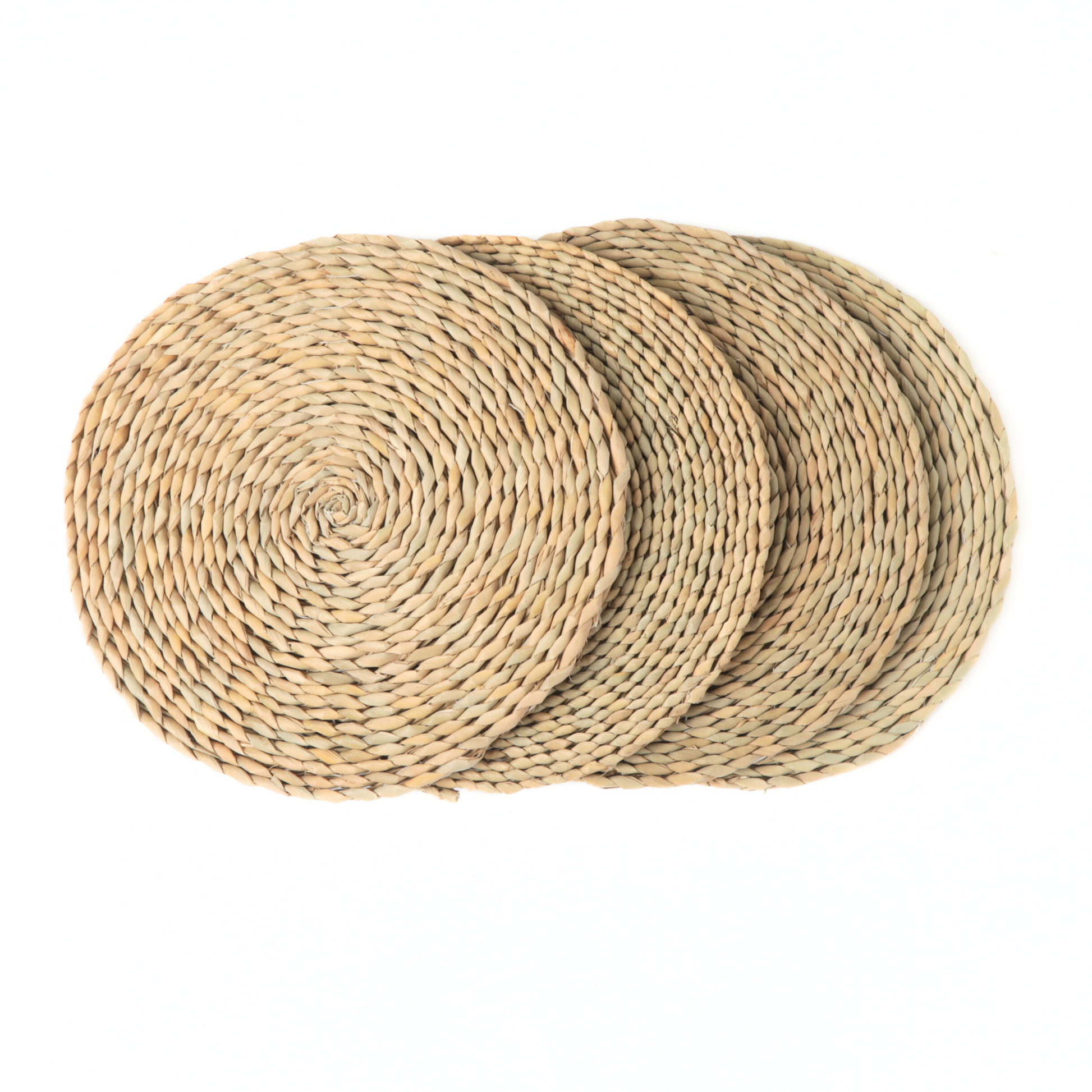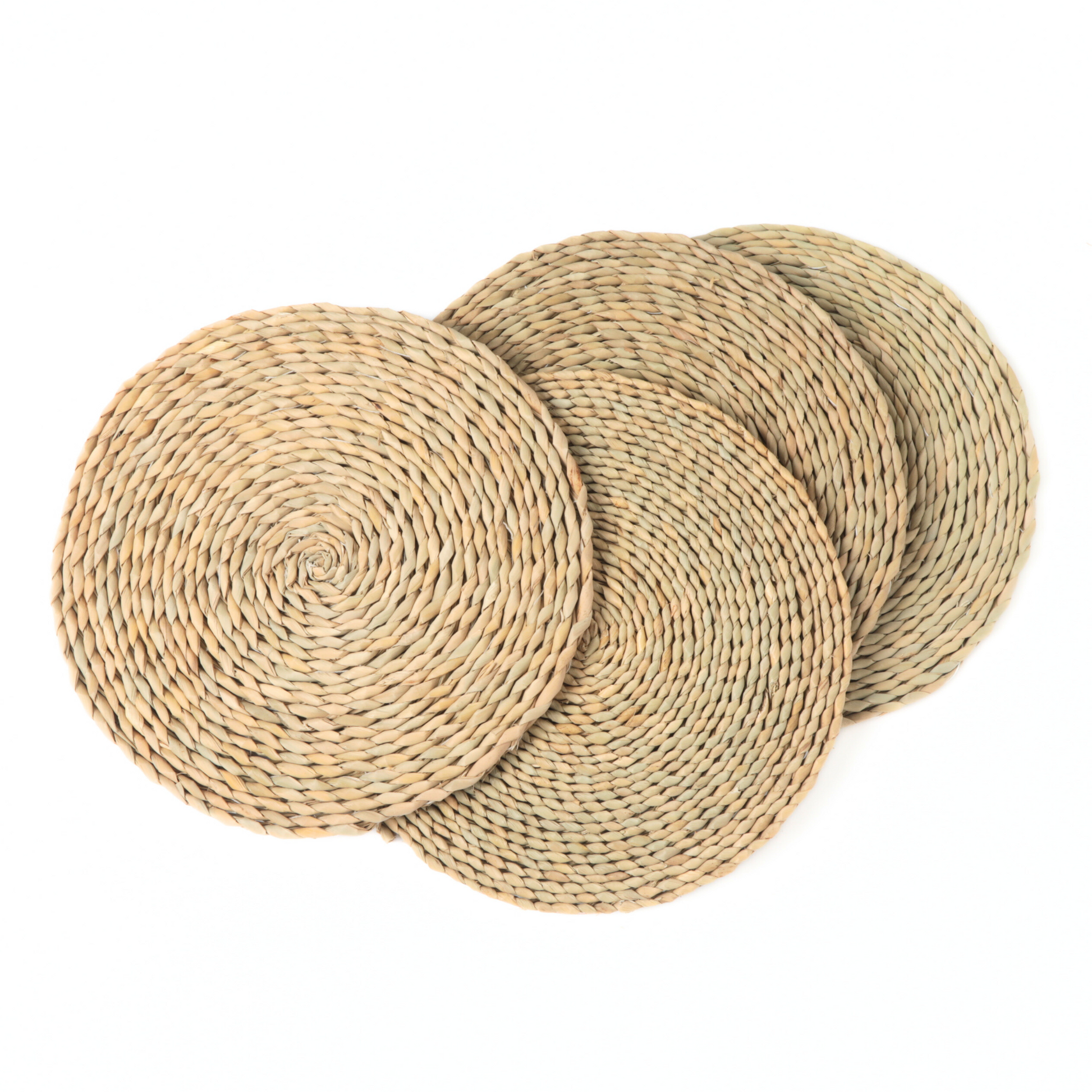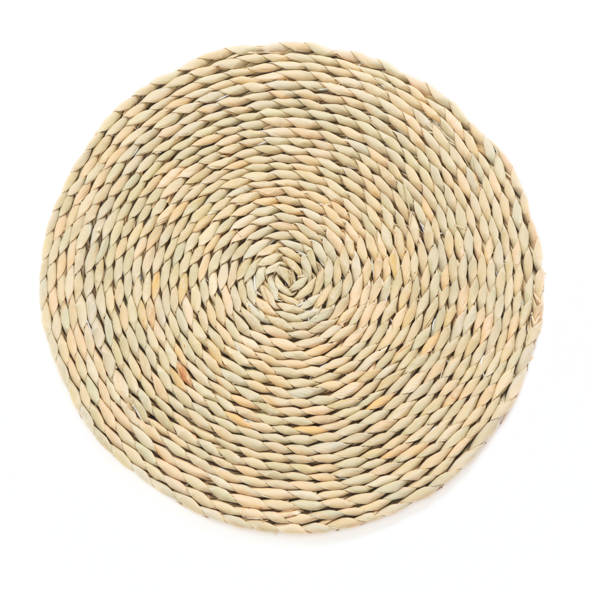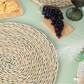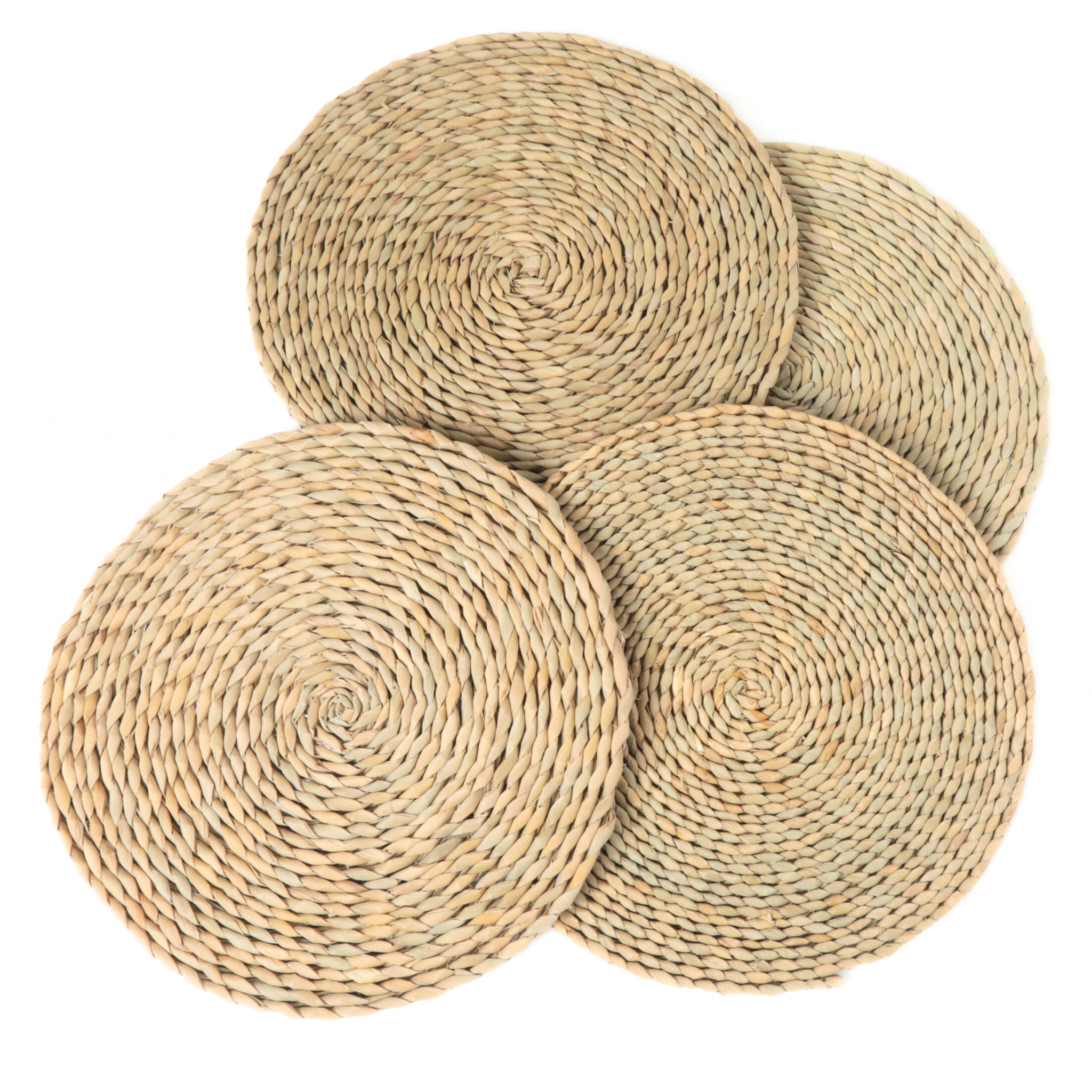 Our placemats are made of raffia straw that is braided into chunky strands and then arranged in a spiral pattern. This gives each placemat a textured look that feels very natural and organic.