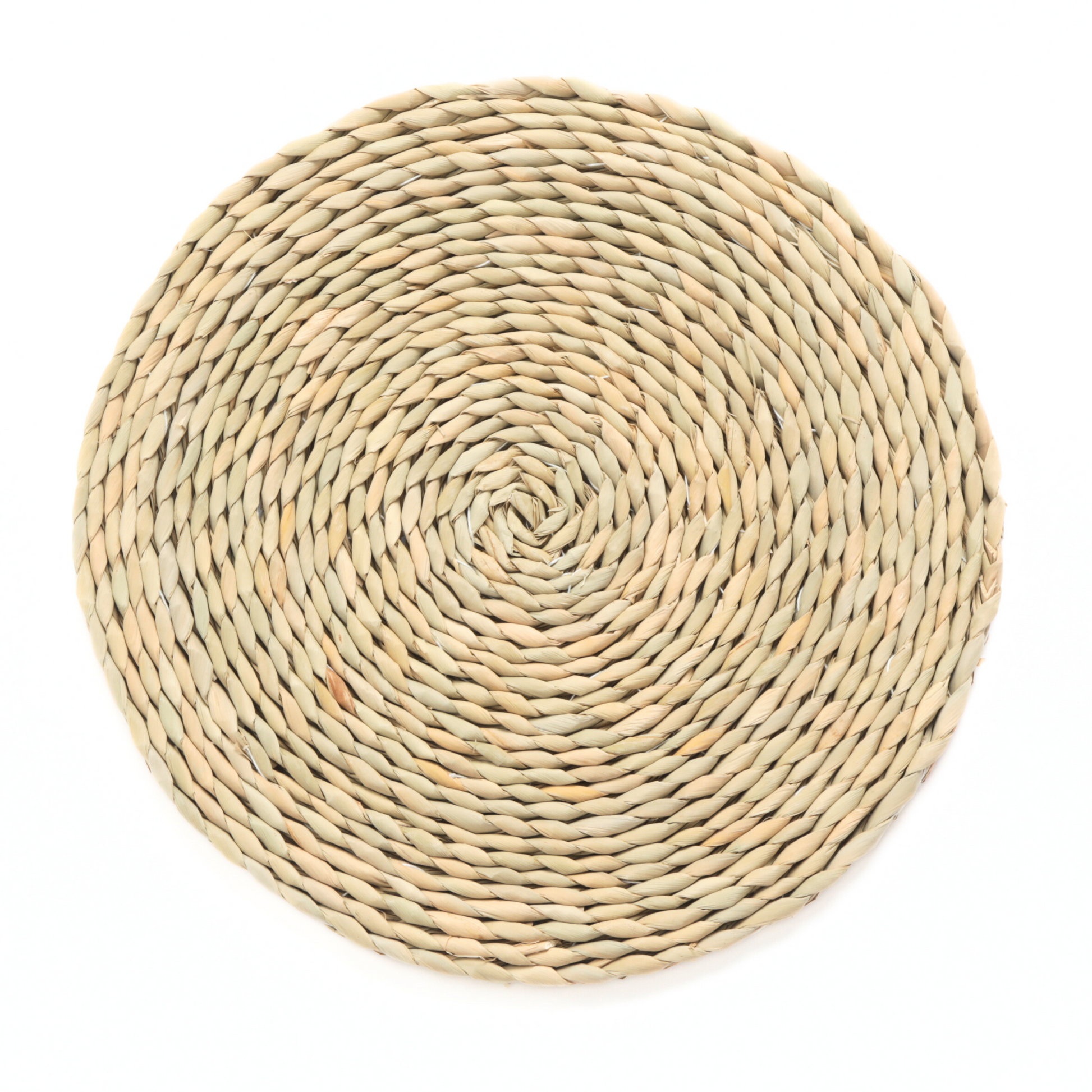 Bring texture and warmth to your tables with our woven straw placemats, made from natural raffia straw. Each piece features chunky braids set in a tight spiral from the center outward. This creates a striking pattern that frames your dinnerware with style.