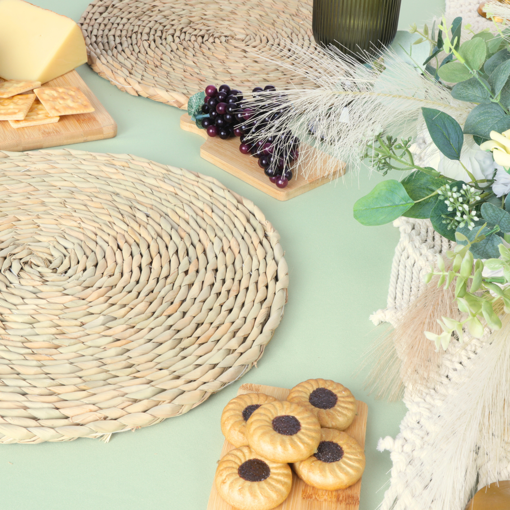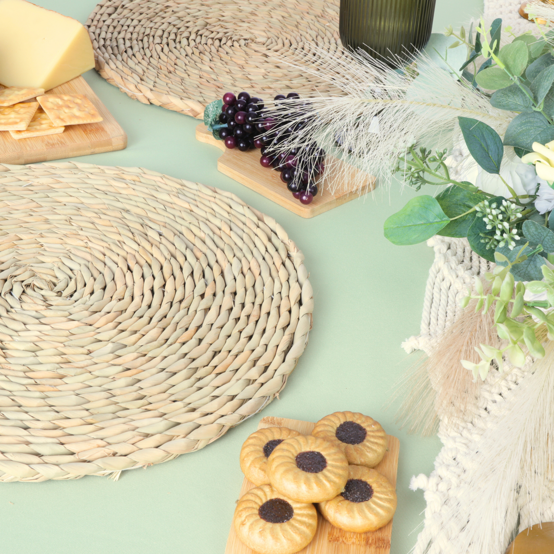 A braided straw placemat adds a warm, organic vibe to your decor. The woven texture feels relaxed and refined, perfect for rustic weddings, garden parties, coastal themes, tropical events, and boho chic celebrations. Place them under your dinnerware and instantly make your table look more inviting.